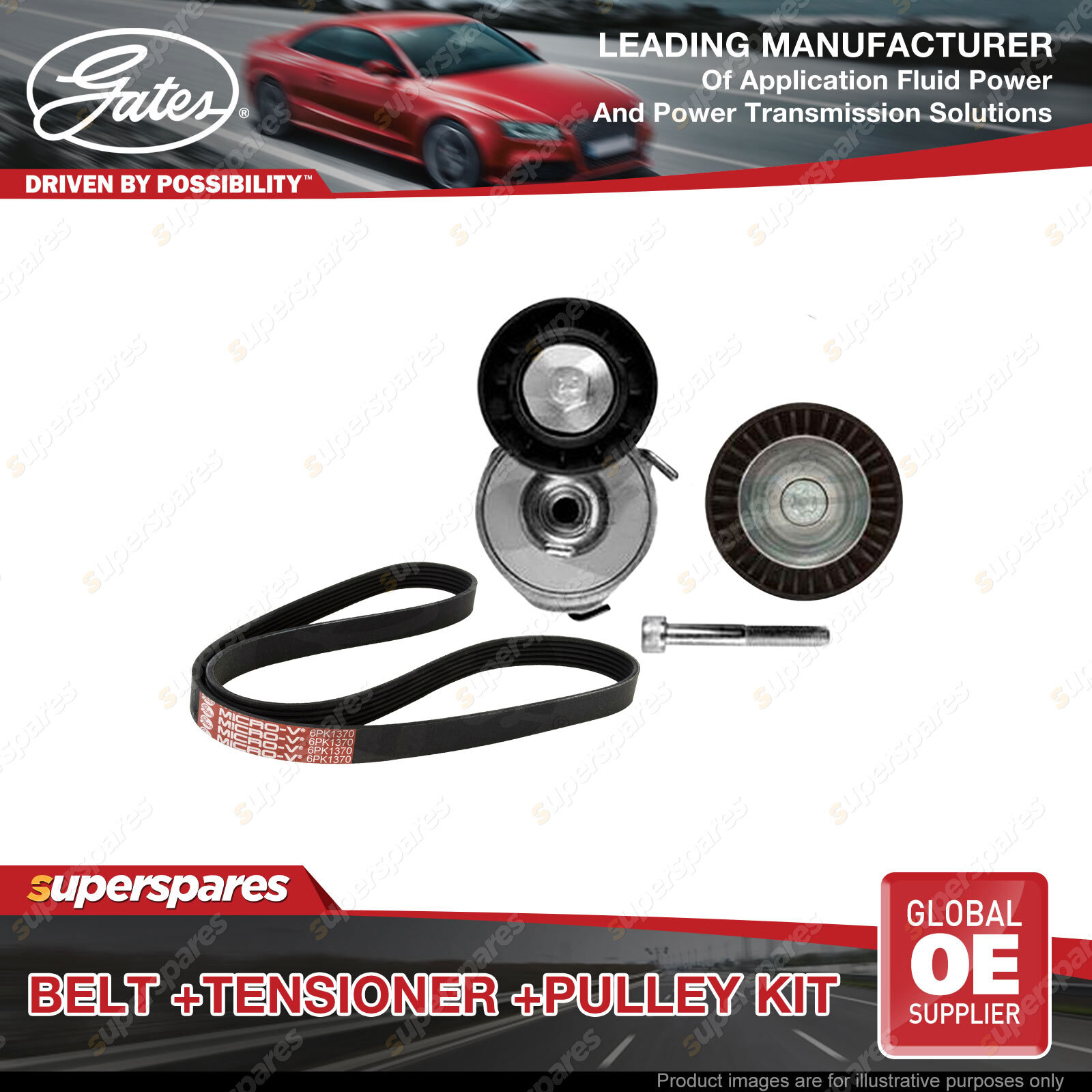 Gates belt kit offer customers the best and most complete repair solution. Gates tensioners offer precise OE fit for a wide array of applications. with gates tensioners, you'll get performance that's equal to or better than the original. Gates idler pulleys reduce wear, vibration, and friction on belts, thereby extending belt service life OE-Quality fit to virtually every domestic or import vehicle on the road today. The special tensile members and fibre-loaded reinforcement of ribs used in Gates belt, aid in added wear and crack resistance. Gates engineers analyse the failure modes of OE designs and make any necessary adjustments to match the performance of the original or even outperform it. Manufactured using the same technology as original equipment manufacturer (OEM) part, assuring a factory match. | ![]() |