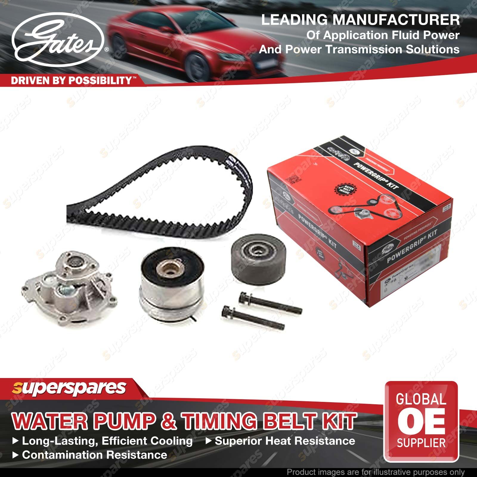 Contents : 1 x Gates Water Pump & PowerGrip Timing Belt Kit