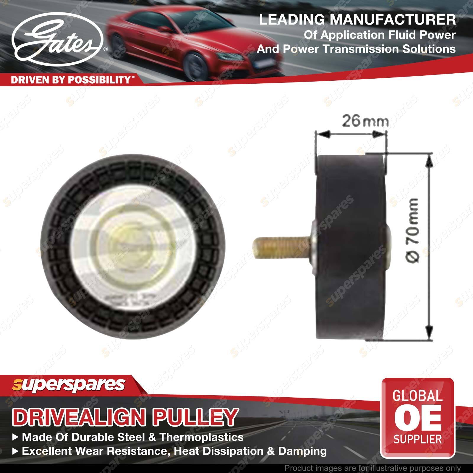 Gates DriveAlign idlers & pulleys provide OE-Quality fit to passenger cars and light trucks, performing as a locked center tensioning pulley, an automatic belt tensioner pulley, or an idler pulley. Gates idler pulleys reduce wear, vibration, and friction on belts, thereby extending belt service life OE-Quality fit to virtually every domestic or import vehicle on the road today. Engineered to exceed demanding OEM requirements. In laboratory tests, under extreme peak-to-peak vibration and contamination tests, driveAlign heavy-duty tensioners lasted up to three times longer than competitive aftermarket tensioners. | ![]() |
