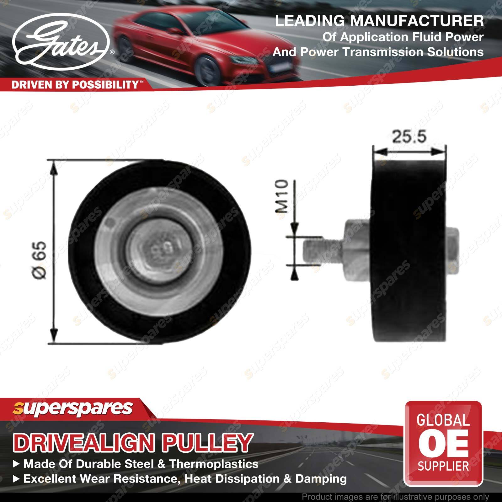 Gates DriveAlign idlers & pulleys provide OE-Quality fit to passenger cars and light trucks, performing as a locked center tensioning pulley, an automatic belt tensioner pulley, or an idler pulley. Gates idler pulleys reduce wear, vibration, and friction on belts, thereby extending belt service life OE-Quality fit to virtually every domestic or import vehicle on the road today. Engineered to exceed demanding OEM requirements. In laboratory tests, under extreme peak-to-peak vibration and contamination tests, driveAlign heavy-duty tensioners lasted up to three times longer than competitive aftermarket tensioners. | ![]() |