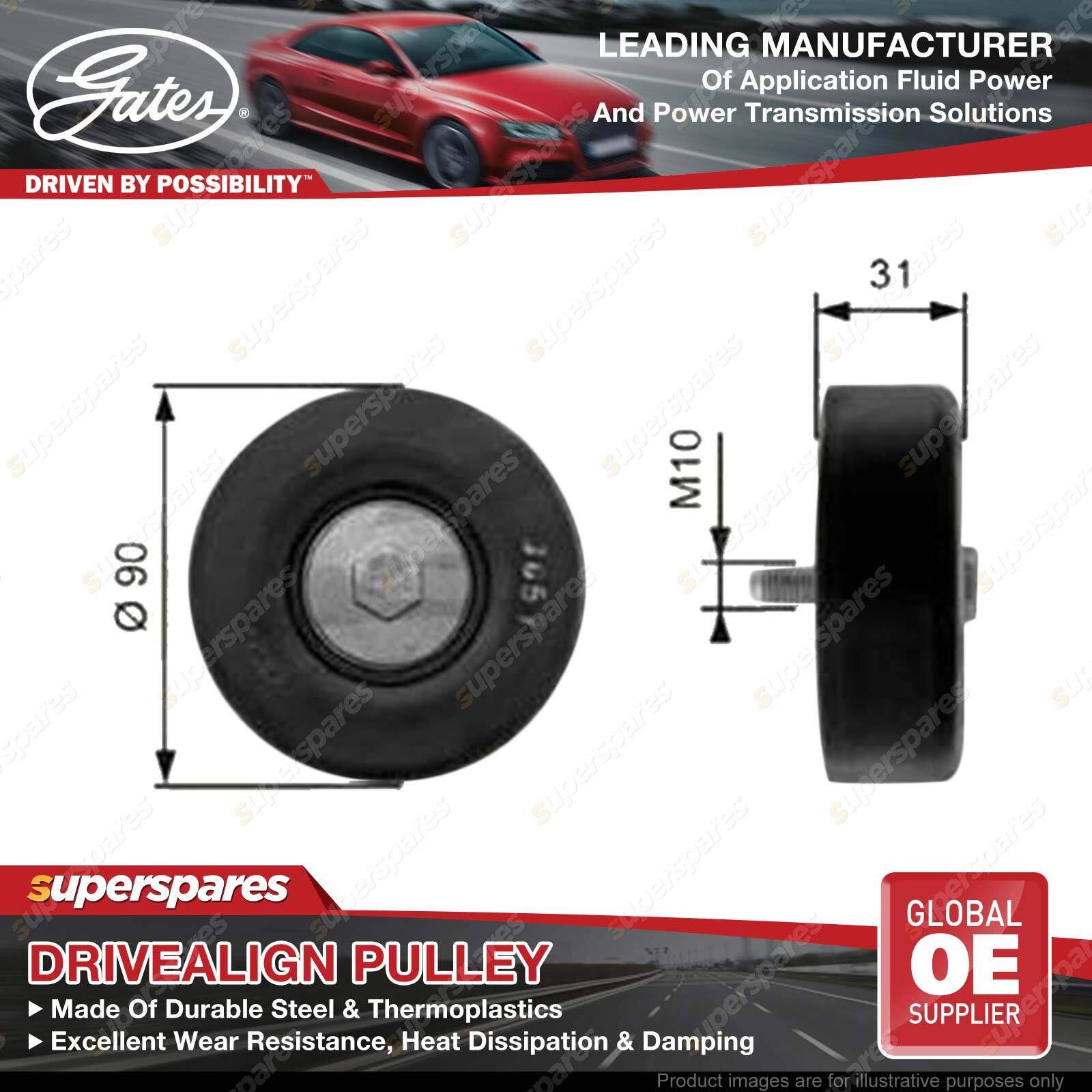 Gates DriveAlign idlers & pulleys provide OE-Quality fit to passenger cars and light trucks, performing as a locked center tensioning pulley, an automatic belt tensioner pulley, or an idler pulley. Gates idler pulleys reduce wear, vibration, and friction on belts, thereby extending belt service life OE-Quality fit to virtually every domestic or import vehicle on the road today. Engineered to exceed demanding OEM requirements. In laboratory tests, under extreme peak-to-peak vibration and contamination tests, driveAlign heavy-duty tensioners lasted up to three times longer than competitive aftermarket tensioners. | ![]() |