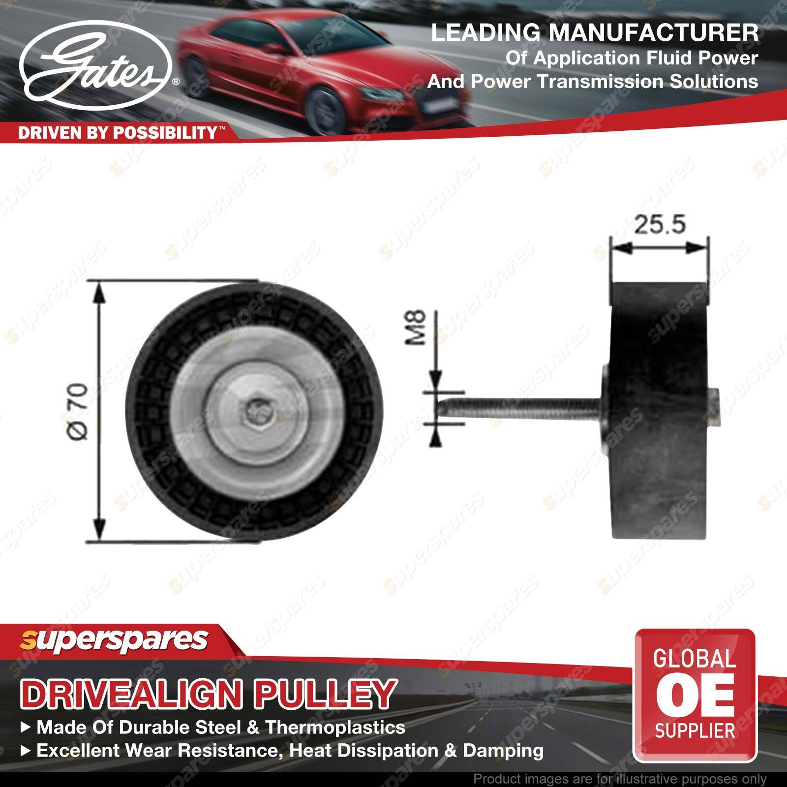 Gates DriveAlign idlers & pulleys provide OE-Quality fit to passenger cars and light trucks, performing as a locked center tensioning pulley, an automatic belt tensioner pulley, or an idler pulley. Gates idler pulleys reduce wear, vibration, and friction on belts, thereby extending belt service life OE-Quality fit to virtually every domestic or import vehicle on the road today. Engineered to exceed demanding OEM requirements. In laboratory tests, under extreme peak-to-peak vibration and contamination tests, driveAlign heavy-duty tensioners lasted up to three times longer than competitive aftermarket tensioners. | ![]() |
