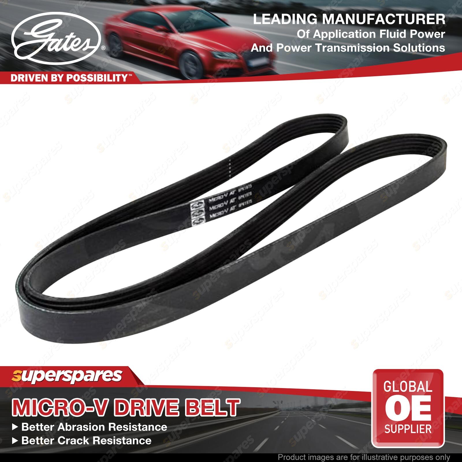 Gates Micro-V Ribbed Belts are an ideal replacement for original belts on serpentine drives and other multi-ribbed belt applications.Designed for small diameter pulleys, backside idlers, and for use with (or without) automotive tensioners.The advanced belt constructions used in these belts help to eliminate belt noise, reduce tension loss and solve problem drive applications.The special tensile members and fibre-loaded reinforcement of ribs used in Gates micro-v belts, aid in added wear and crack resistance. | ![]() |