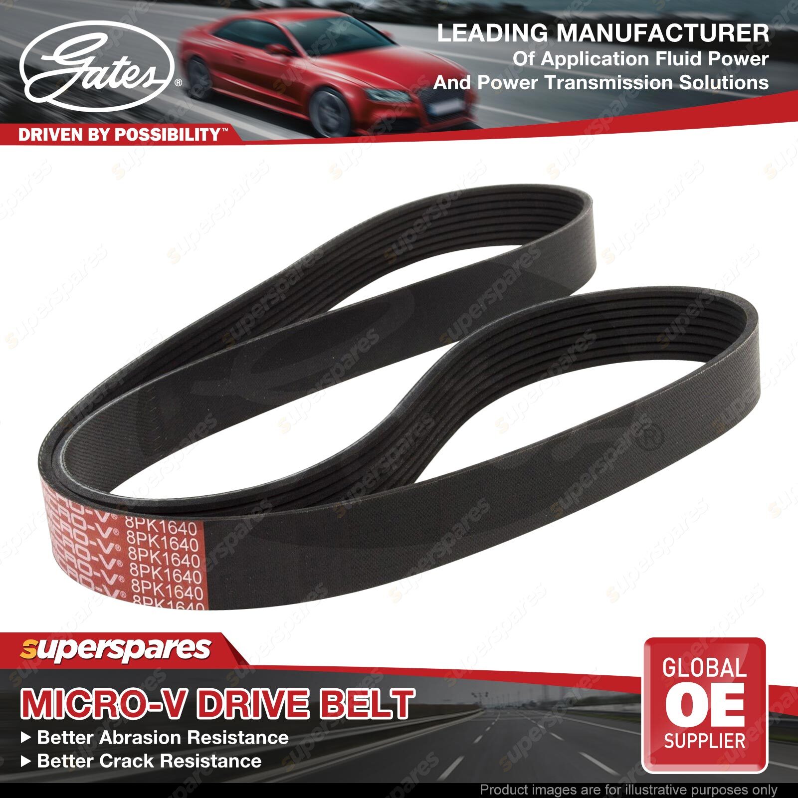 Gates Micro-V Ribbed Belts are an ideal replacement for original belts on serpentine drives and other multi-ribbed belt applications.Designed for small diameter pulleys, backside idlers, and for use with (or without) automotive tensioners.The advanced belt constructions used in these belts help to eliminate belt noise, reduce tension loss and solve problem drive applications.The special tensile members and fibre-loaded reinforcement of ribs used in Gates micro-v belts, aid in added wear and crack resistance. | ![]() |