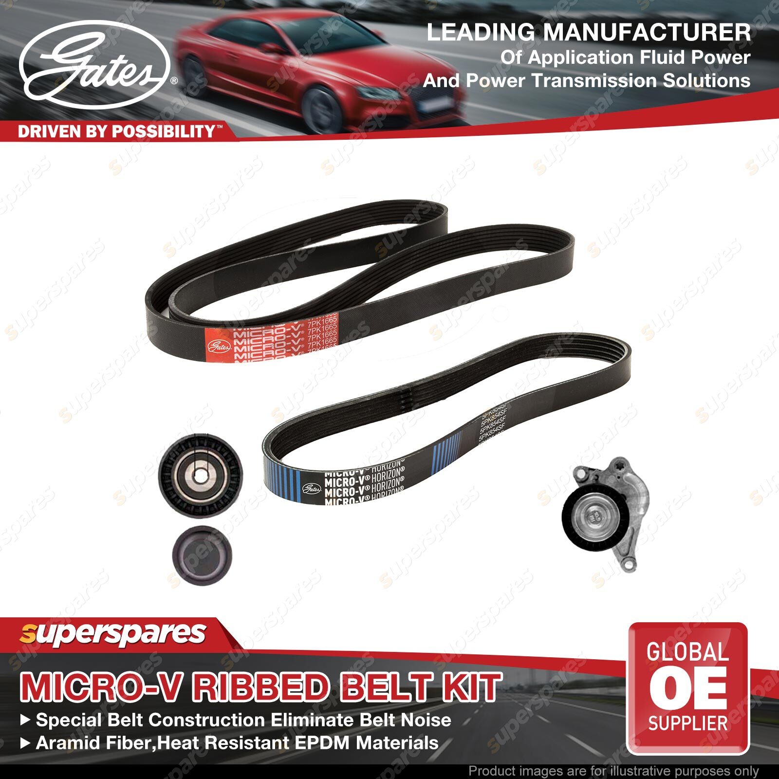 Contents : 1 x Gates Micro-V Ribbed Belt Kit