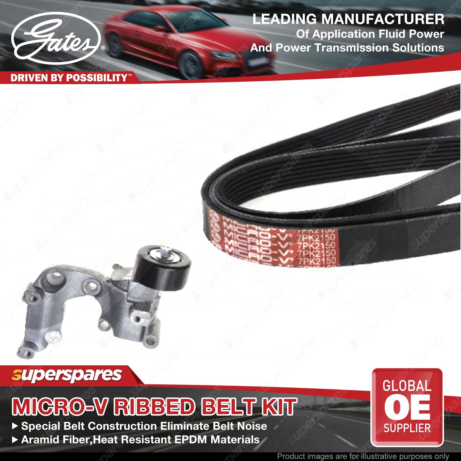 Contents : Gates Micro-V Ribbed Belt Kit Powered Unit : Alternator |