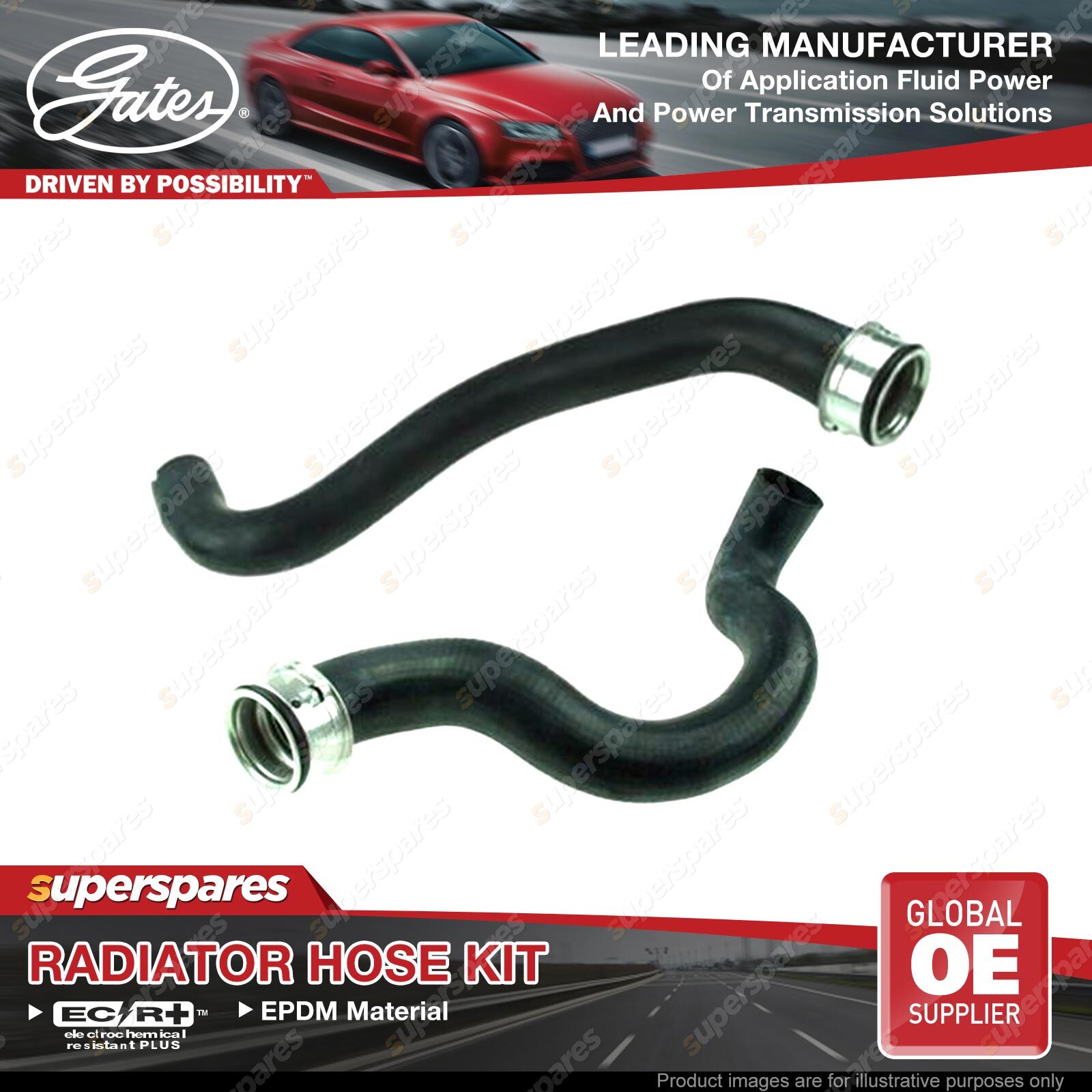 Contents : Gates Radiator Hose Kit (Upper + Lower)