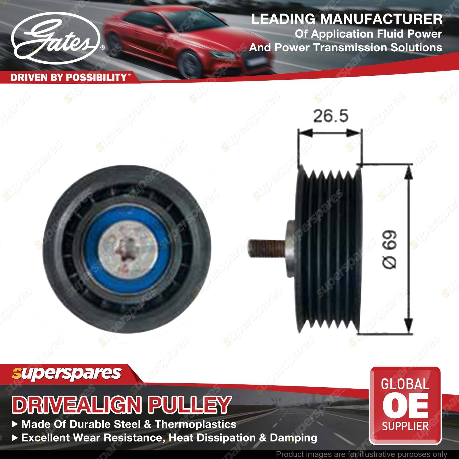 Gates DriveAlign idlers & pulleys provide OE-Quality fit to passenger cars and light trucks, performing as a locked center tensioning pulley, an automatic belt tensioner pulley, or an idler pulley. Gates idler pulleys reduce wear, vibration, and friction on belts, thereby extending belt service life OE-Quality fit to virtually every domestic or import vehicle on the road today. Engineered to exceed demanding OEM requirements. In laboratory tests, under extreme peak-to-peak vibration and contamination tests, driveAlign heavy-duty tensioners lasted up to three times longer than competitive aftermarket tensioners. | ![]() |