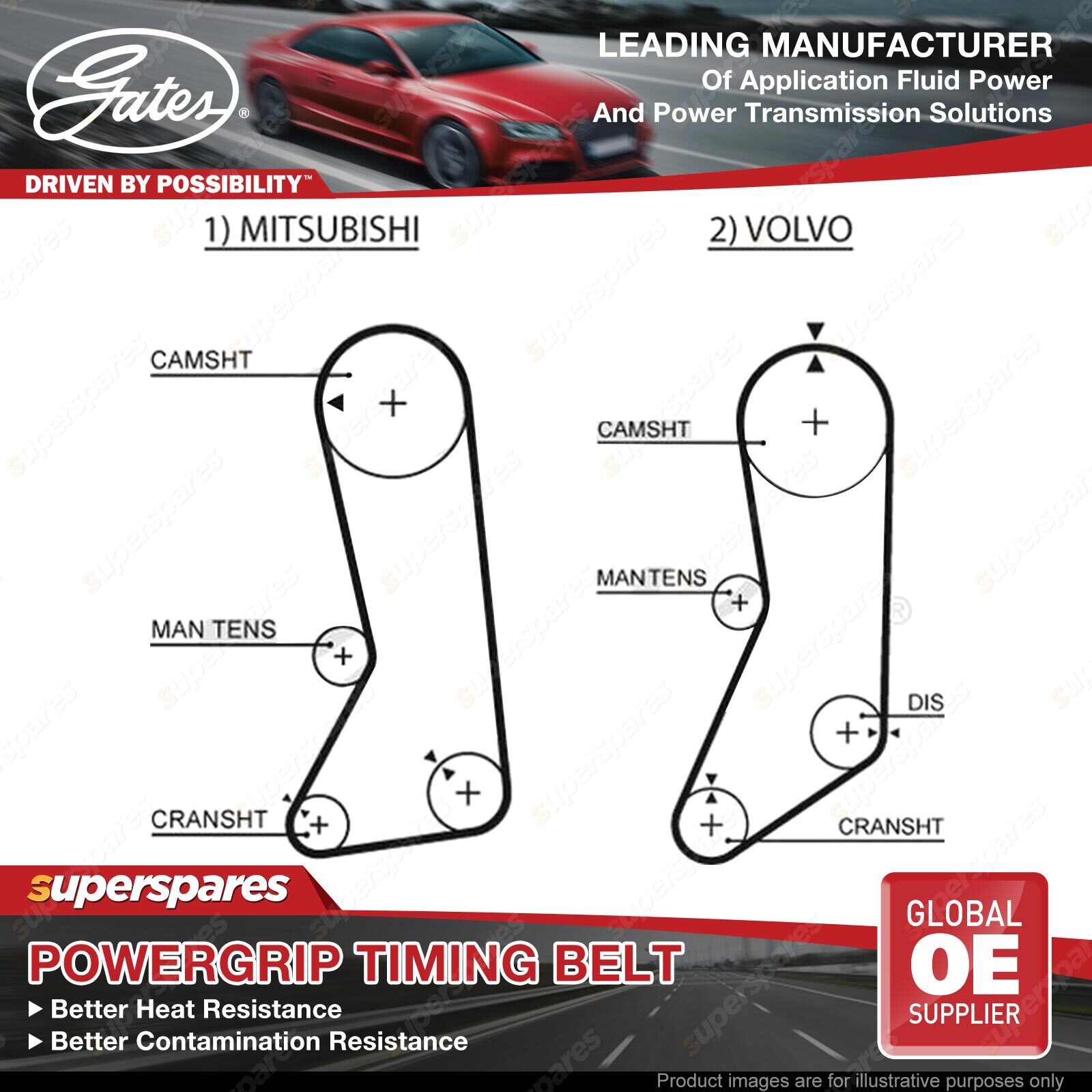 Gates is the largest global manufacturer of OE timing belts. This means Gates is able to cover the Aftermarket with timing belts that perform exactly like the OE.Our timing belts are manufactured using the same high grade materials and processes as the OE to ensure superior heat and contamination resistance. | ![]() |