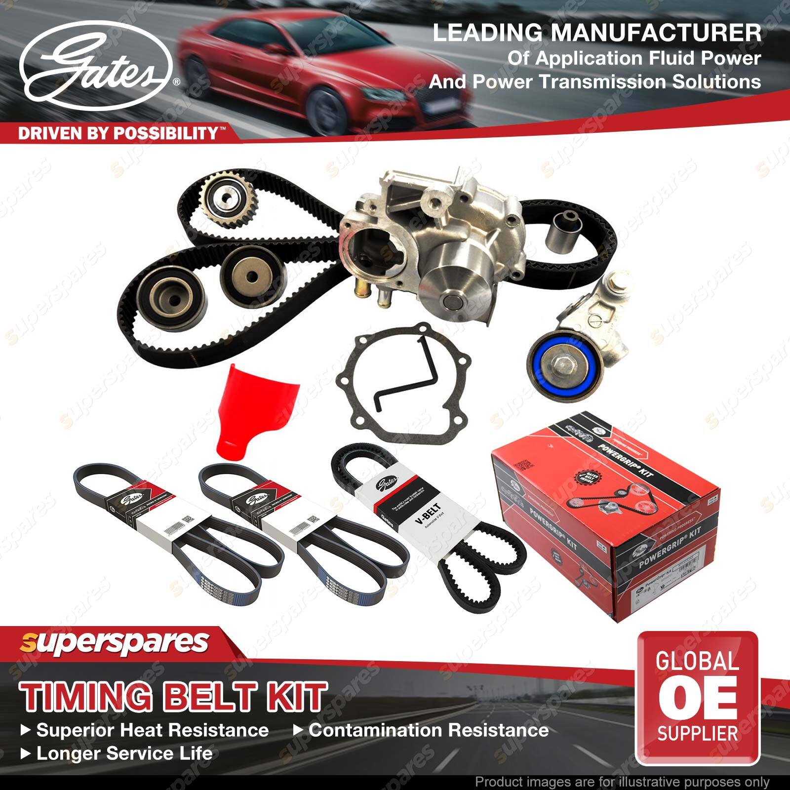 Gates timing belt component kits with water pump offer customers the best and most complete repair solution .many water pumps are driven by the timing belt. If the water pump fails, coolant will leak and contaminate the belt.Long-term coolant contamination will eventually lead to premature timing belt failure. Our technician recommends replacing the timing belt driven water pump while servicing the timing belt and other drive components. Flawless operation of the cars accessory belt drive depends on every component working as a team. If any component fails, the entire system breaks down resulting in costly repairs. The best long term solution is to replace all wear parts simultaneously. Not only you have genuine Gates timing belt but every component in your timing belt kit is precision engineered and built to OE standards by Gates - the world's foremost manufacturer of automotive timing systems. | ![]() |