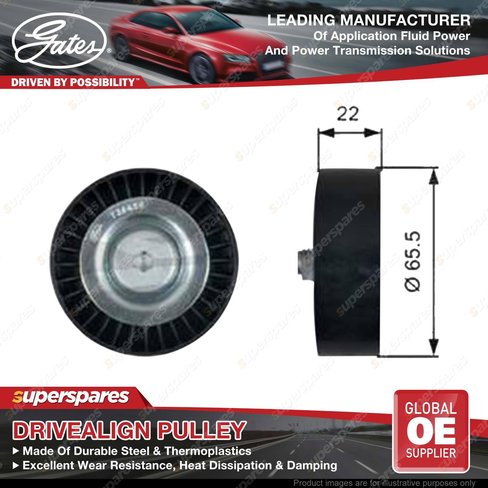 Gates DriveAlign idlers & pulleys provide OE-Quality fit to passenger cars and light trucks, performing as a locked center tensioning pulley, an automatic belt tensioner pulley, or an idler pulley. Gates idler pulleys reduce wear, vibration, and friction on belts, thereby extending belt service life OE-Quality fit to virtually every domestic or import vehicle on the road today. Engineered to exceed demanding OEM requirements. In laboratory tests, under extreme peak-to-peak vibration and contamination tests, driveAlign heavy-duty tensioners lasted up to three times longer than competitive aftermarket tensioners. | ![]() |