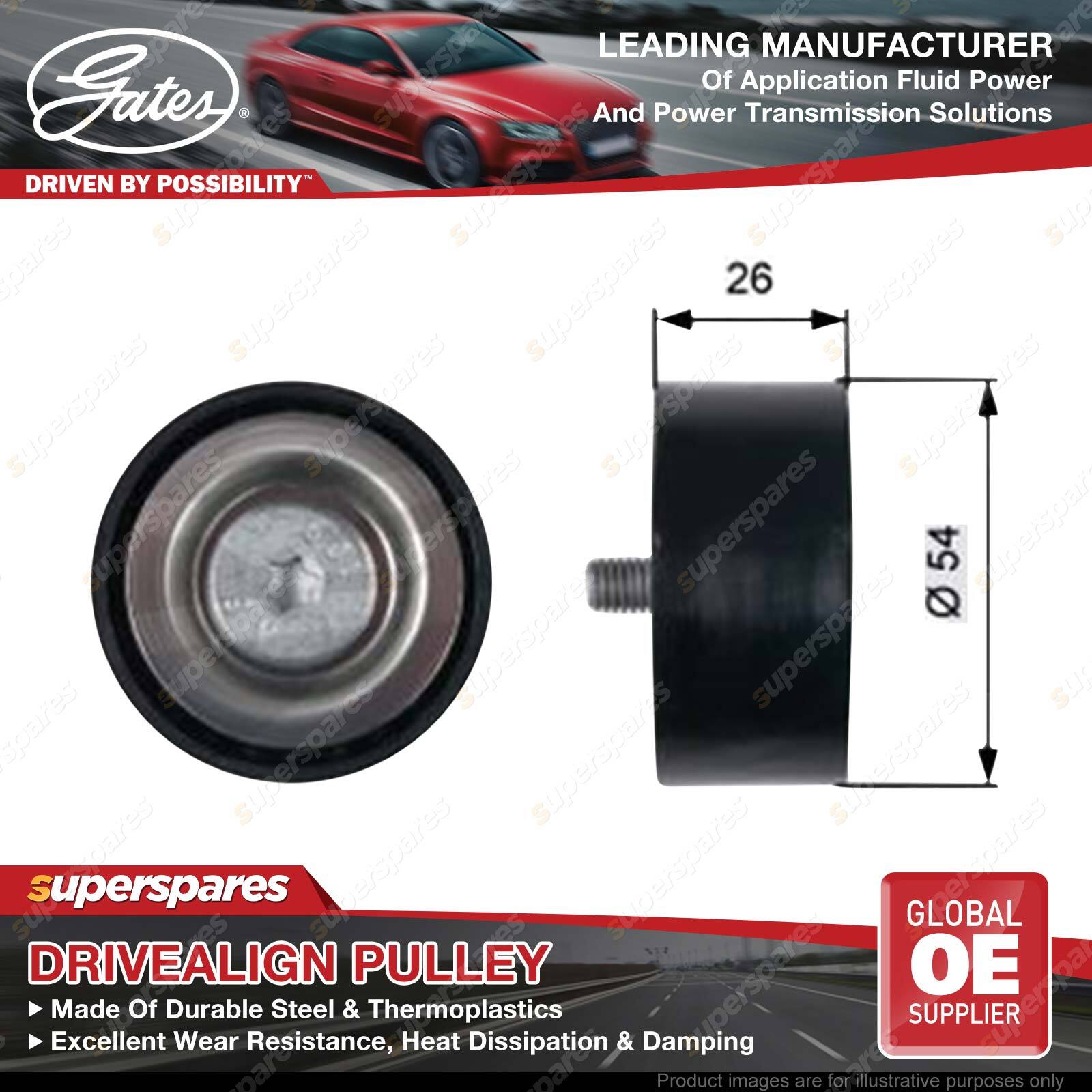 Gates DriveAlign idlers & pulleys provide OE-Quality fit to passenger cars and light trucks, performing as a locked center tensioning pulley, an automatic belt tensioner pulley, or an idler pulley. Gates idler pulleys reduce wear, vibration, and friction on belts, thereby extending belt service life OE-Quality fit to virtually every domestic or import vehicle on the road today. Engineered to exceed demanding OEM requirements. In laboratory tests, under extreme peak-to-peak vibration and contamination tests, driveAlign heavy-duty tensioners lasted up to three times longer than competitive aftermarket tensioners. | ![]() |