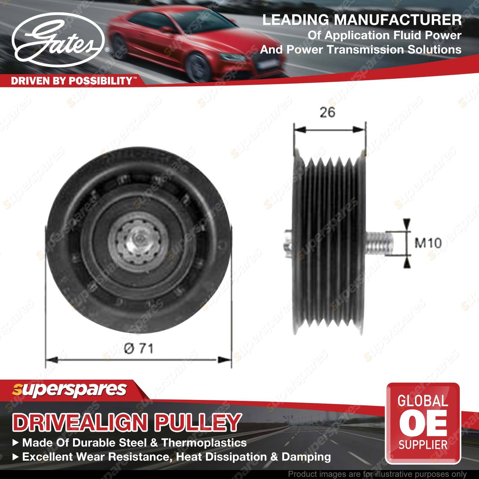 Gates DriveAlign idlers & pulleys provide OE-Quality fit to passenger cars and light trucks, performing as a locked center tensioning pulley, an automatic belt tensioner pulley, or an idler pulley. Gates idler pulleys reduce wear, vibration, and friction on belts, thereby extending belt service life OE-Quality fit to virtually every domestic or import vehicle on the road today. Engineered to exceed demanding OEM requirements. In laboratory tests, under extreme peak-to-peak vibration and contamination tests, driveAlign heavy-duty tensioners lasted up to three times longer than competitive aftermarket tensioners. | ![]() |