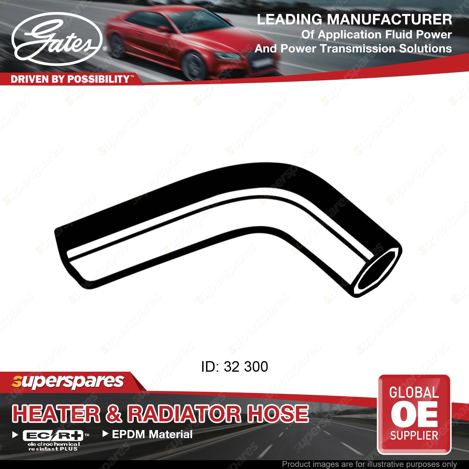 Contents : 1 x Gates Radiator Hose Material : EPDM(ethylene propylene diene Monomer (M-class) rubber) Position : Upper Hose Length [mm] : 300 Inner Diameter 1 [mm] : 32 |