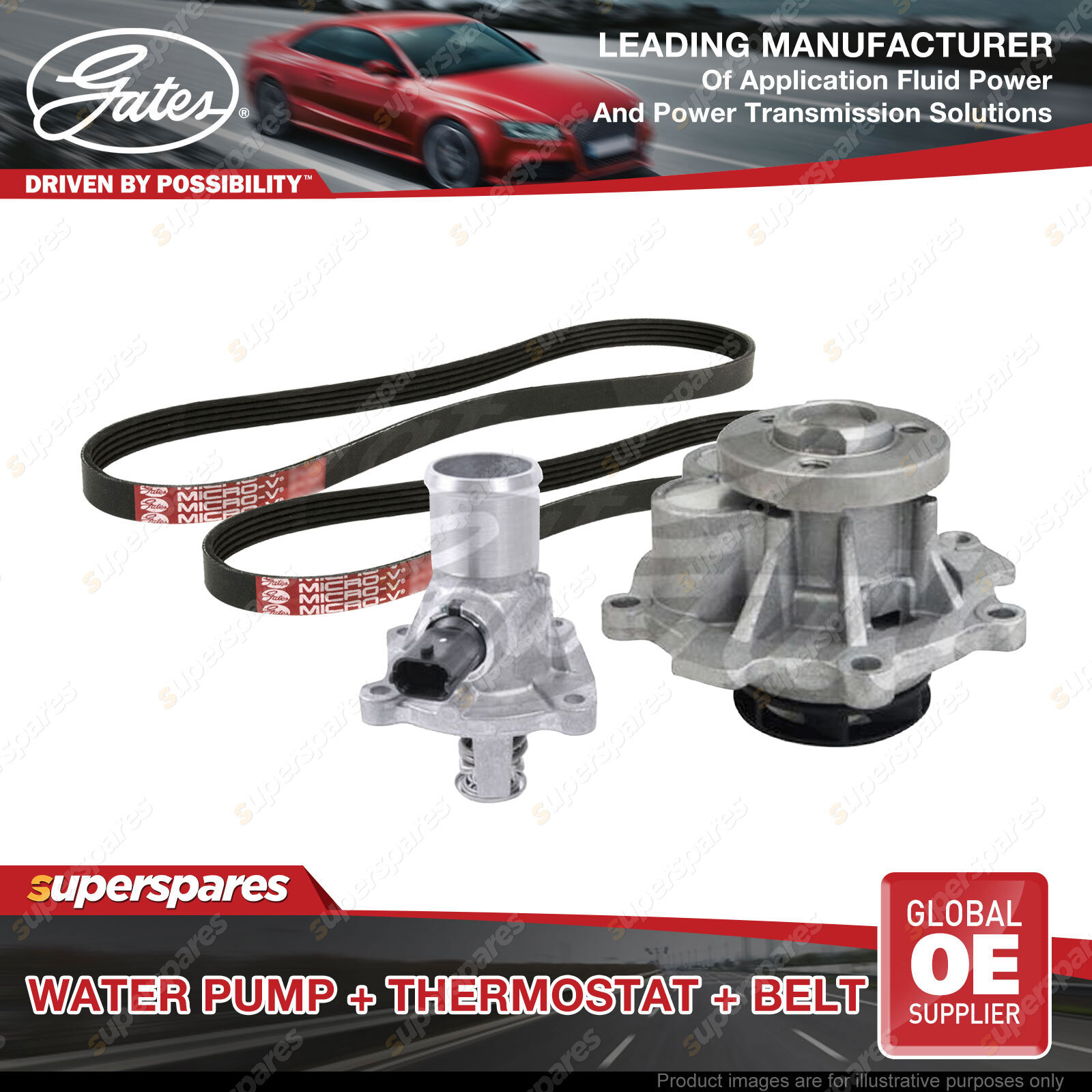 Contents : Gates Water Pump + Thermostat + Drive Belt Kit