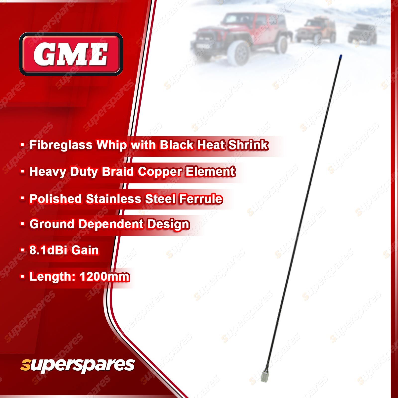 ![]() | For over 60 years GME has designed and manufactured an extensive range of high quality accessories to suit a wide variety of applications. From 4WDing to Boating and Fishing, GME has a genuine accessory to meet every need. Built to last, the UHF CB Antenna range from GME is durable and consists of a variety of mounting, design and length options. |