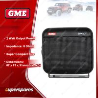 ![]() | For over 60 years GME has designed and manufactured an extensive range of high quality accessories to suit a wide variety of applications. From 4WDing to Boating and Fishing, GME has a genuine accessory to meet every need. The SPK07 is an extension speaker to suit a wide range of GME radios to enhance the audio experience in noisy environments, ensuring important calls are never missed. With 2 Watts of output power and a super compact size this extension speaker is the ideal solution for installations where space is limited. Supplied with lead, plug, mounting bracket and mounting hardware. |