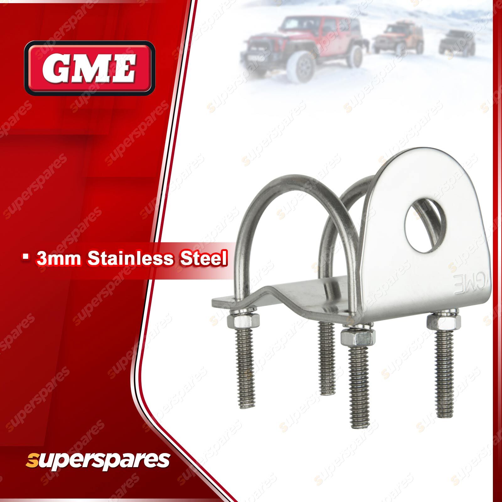 ![]() | For over 60 years GME has designed and manufactured an extensive range of high quality accessories to suit a wide variety of applications. From 4WDing to Boating and Fishing, GME has a genuine accessory to meet every need. Right-Angle Bullbar Bracket - Stainless Steel. |