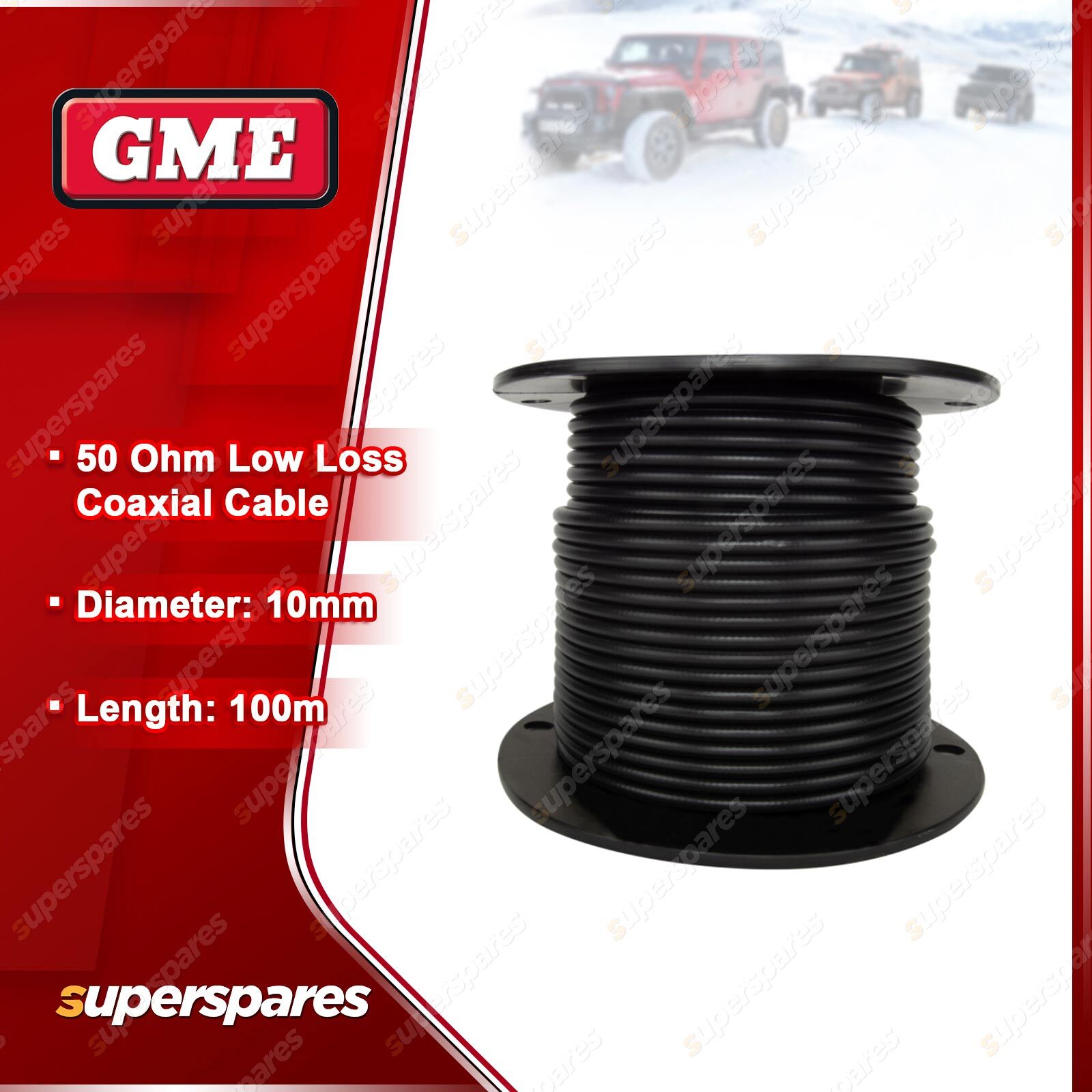 ![]() | For over 60 years GME has designed and manufactured an extensive range of high quality accessories to suit a wide variety of applications. From 4WDing to Boating and Fishing, GME has a genuine accessory to meet every need. 50 Ohm Low Loss Coaxial Cable - 10mm diameter (100m) |