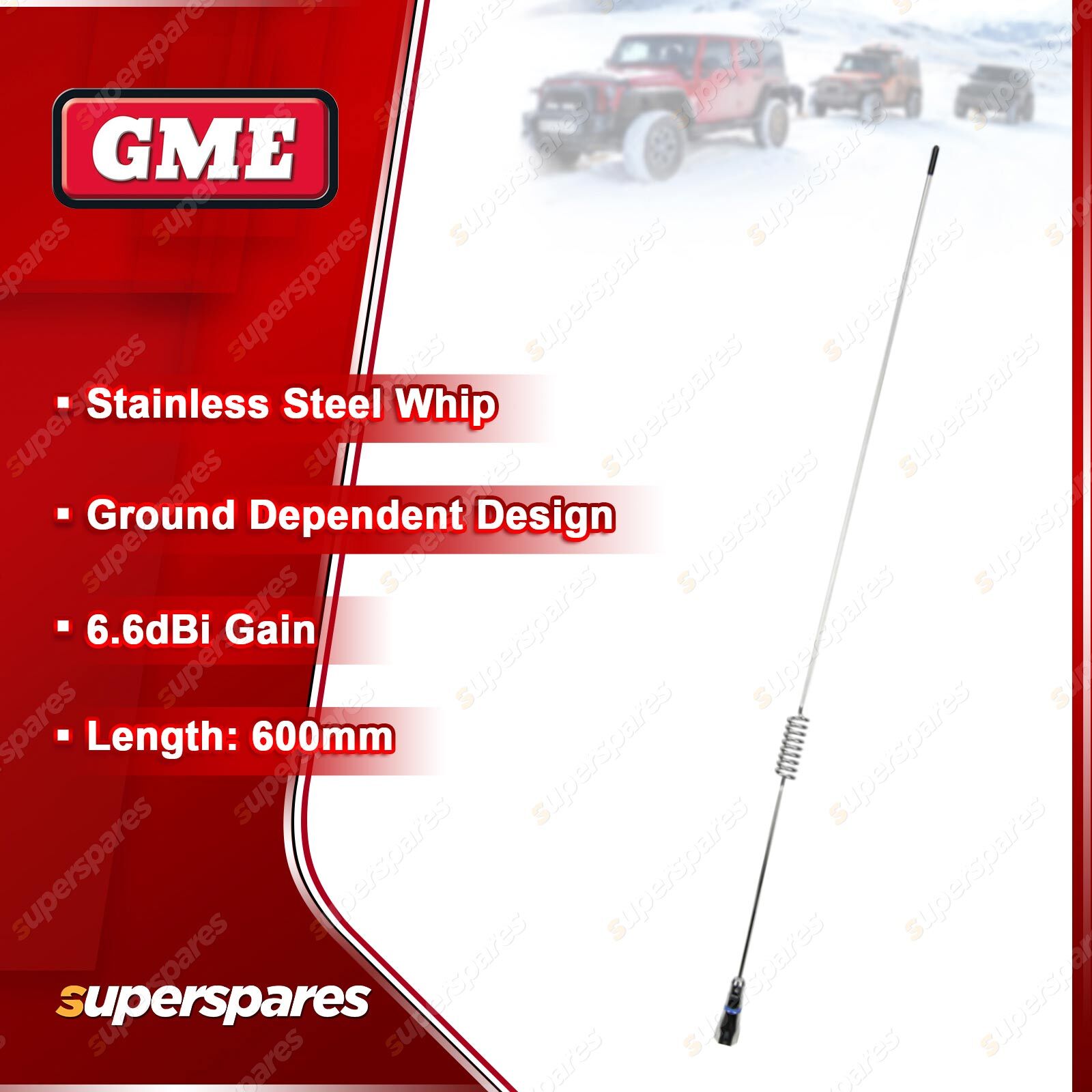 ![]() | For over 60 years GME has designed and manufactured an extensive range of high quality accessories to suit a wide variety of applications. From 4WDing to Boating and Fishing, GME has a genuine accessory to meet every need. Built to last, the UHF CB Antenna range from GME is durable and consists of a variety of mounting, design and length options. |