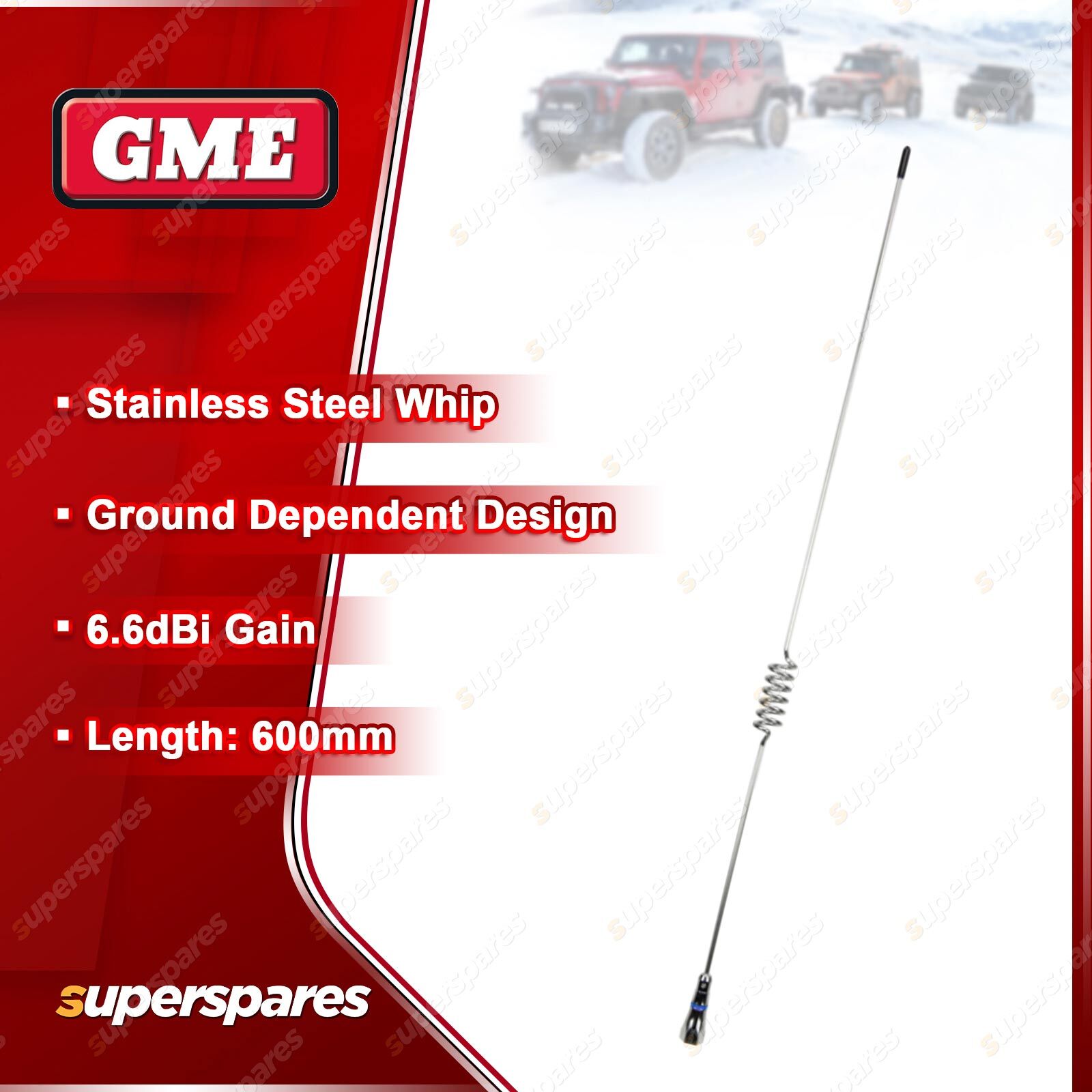 ![]() | For over 60 years GME has designed and manufactured an extensive range of high quality accessories to suit a wide variety of applications. From 4WDing to Boating and Fishing, GME has a genuine accessory to meet every need. Built to last, the UHF CB Antenna range from GME is durable and consists of a variety of mounting, design and length options. |