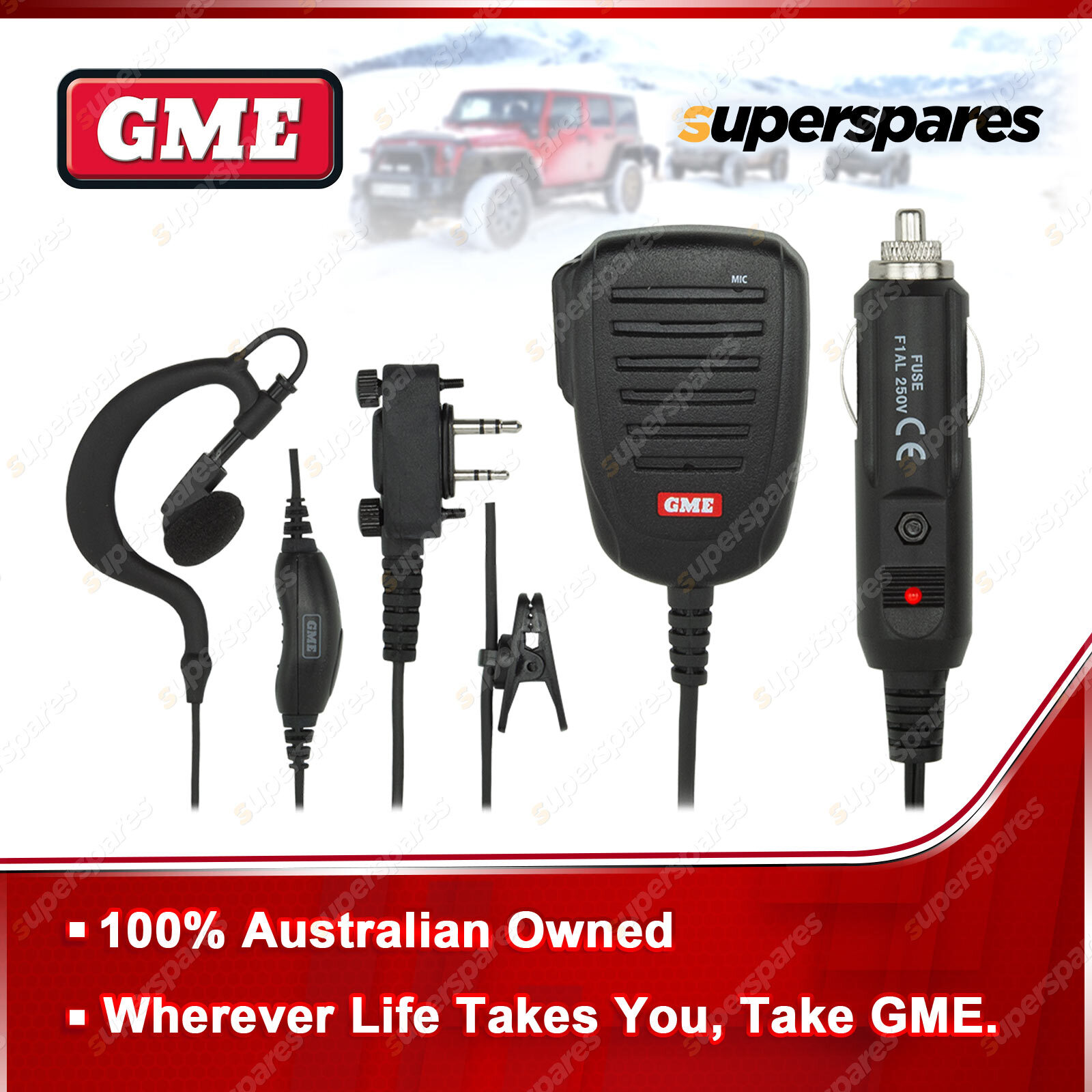 ![]() | For over 60 years GME has designed and manufactured an extensive range of high quality accessories to suit a wide variety of applications. From 4WDing to Boating and Fishing, GME has a genuine accessory to meet every need. Accessory kit to Suit Radio TX-SS6160X variants. Includes speaker microphone, earpiece microphone, 12V DC vehicle charger |