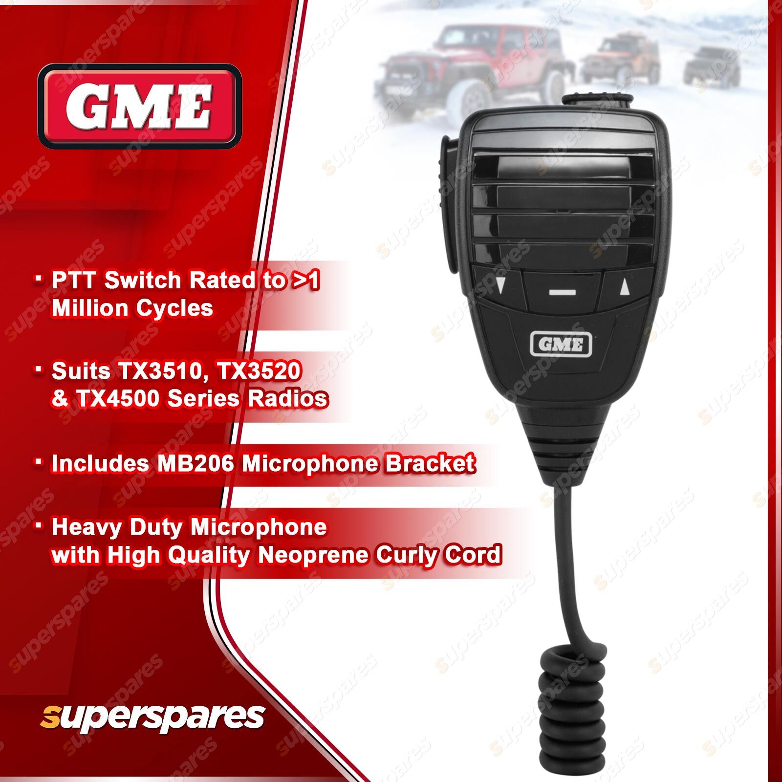![]() | For over 60 years GME has designed and manufactured an extensive range of high quality accessories to suit a wide variety of applications. From 4WDing to Boating and Fishing, GME has a genuine accessory to meet every need. Replacement Heavy Duty Microphone - Suit Radio TX-SS3510S / TX-SS3520S / TX-SS2720 / TX-SS4500S |