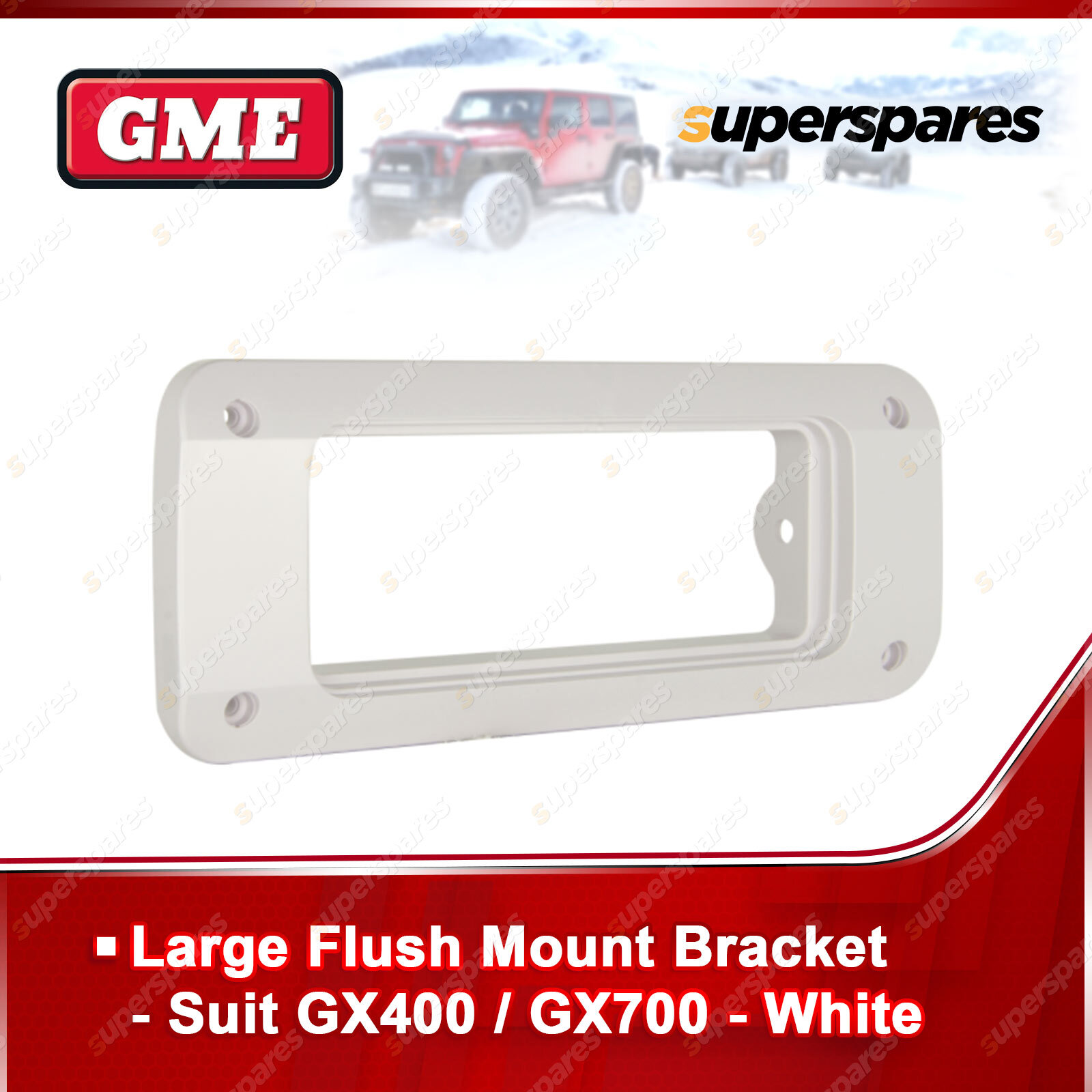 ![]() | For over 60 years GME has designed and manufactured an extensive range of high quality accessories to suit a wide variety of applications. From 4WDing to Boating and Fishing, GME has a genuine accessory to meet every need. Large Flush Mount Bracket - Suit GX-SS400 / GX-SS700 - White. |