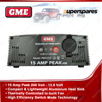 ![]() | For over 60 years GME has designed and manufactured an extensive range of high quality accessories to suit a wide variety of applications. The GME PSM Series of Regulated Power Supplies offer quality and superior performance rarely found in competitor power supplies. All PSM Series Power Supplies feature rugged steel construction, superior performance and unparalleled reliability with less than 20mV ripple at the continuous rating, making them ideal for all RF and computer applications. With a vented wrap-around steel cover, high efficiency heat sinks, heavy duty construction and PC board mounted regulator circuitry, the PSM series are quality power supplies with solid performance and high reliability. |