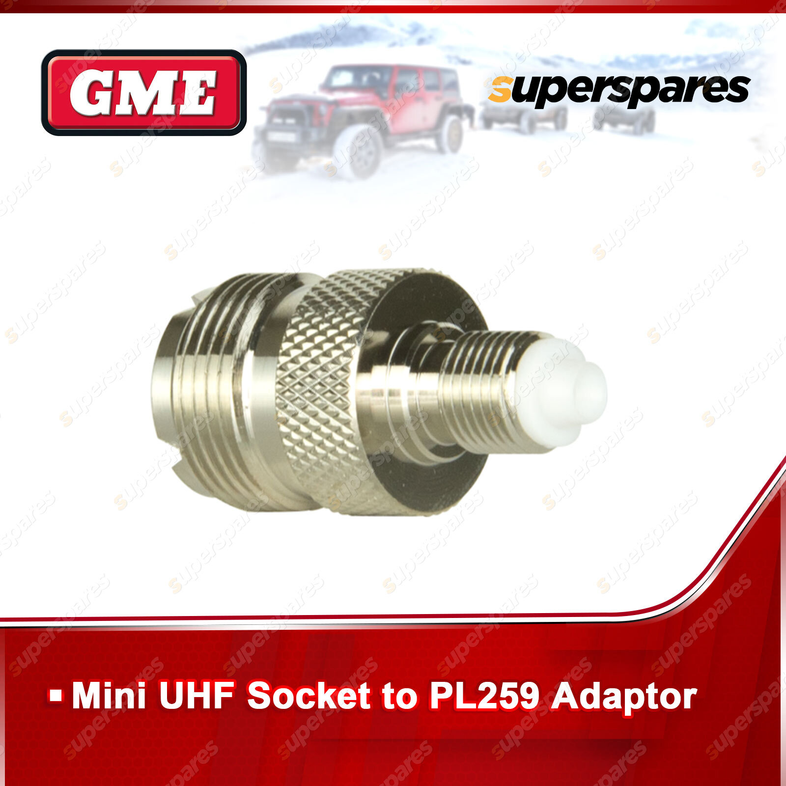 ![]() | For over 60 years GME has designed and manufactured an extensive range of high quality accessories to suit a wide variety of applications. From 4WDing to Boating and Fishing, GME has a genuine accessory to meet every need. UHF Female SO239 to FME Female Adaptor. |