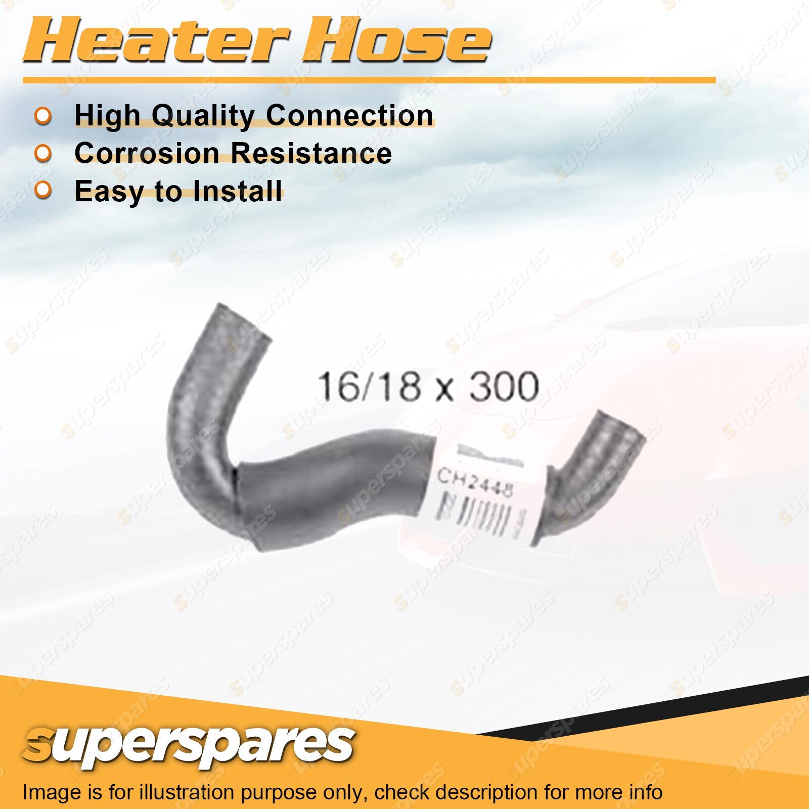 Content : 1 x Heater Hose Brand : Superspares | Parameter : Length : 300mm Inside Diameter : 16mm Bell Inside Diameter : 18mm |