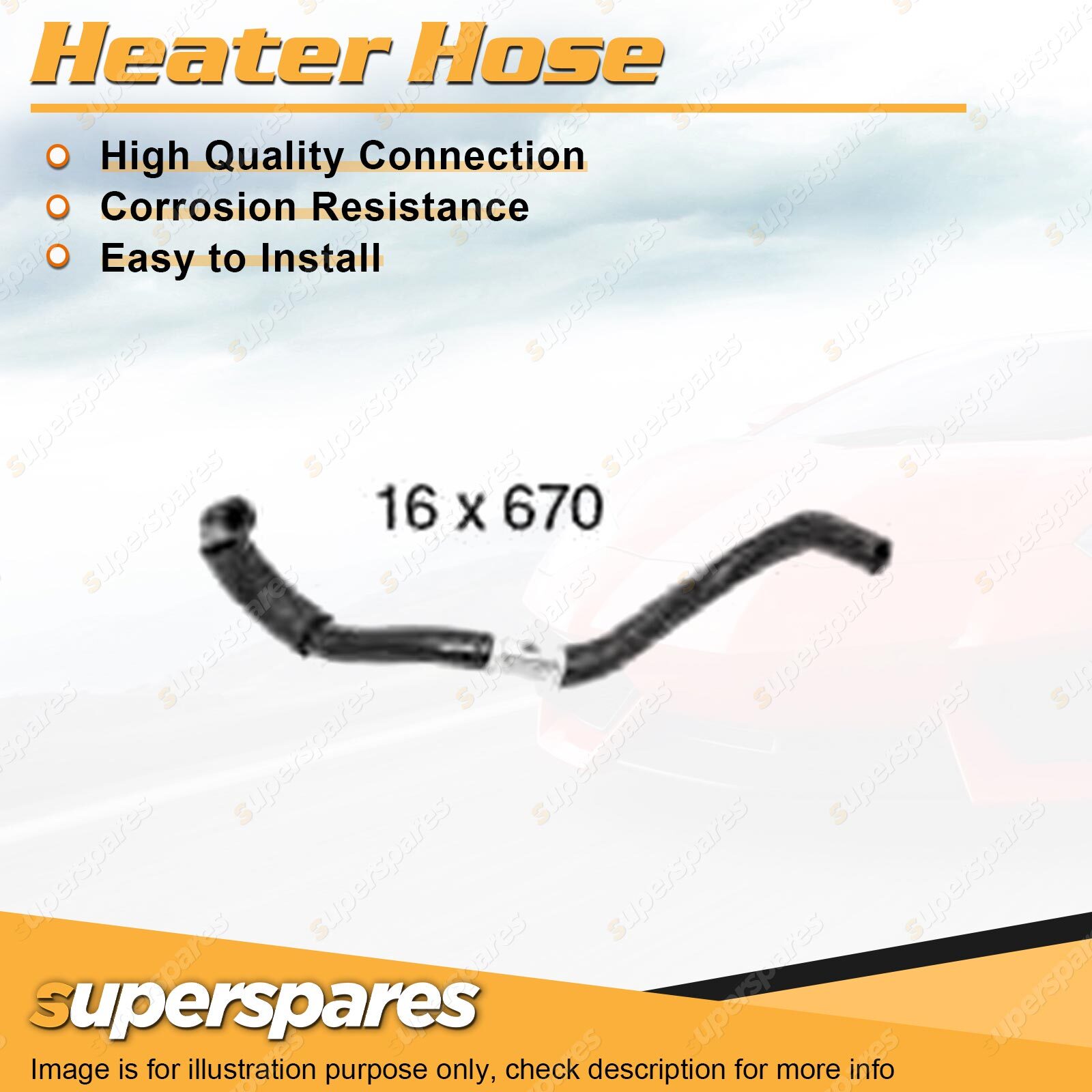 Content : 1 x Heater Hose Brand : Superspares | Parameter : Length : 670mm Inside Diameter : 16mm |