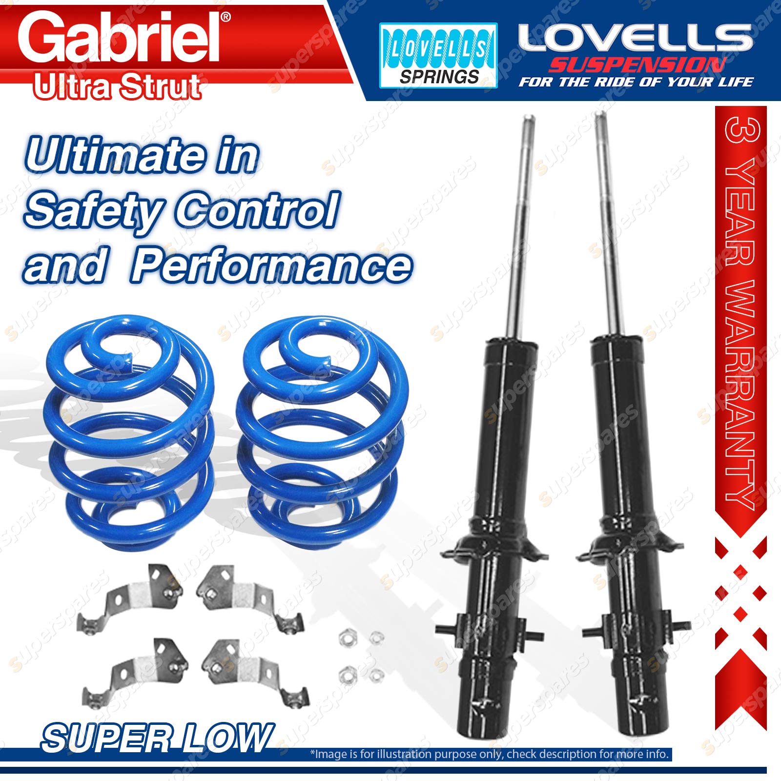Contents: 2 x Gabriel Ultra Strut Shock Absorbers - Gas 2 x Super Low Lovells Springs Suit: Honda Civic ED3, ED6 Sedan, Hatchback to chassis S100001 10/87-88 Honda CRX ED9 1.6L Liftback to chassis S100001 10/87-88 |