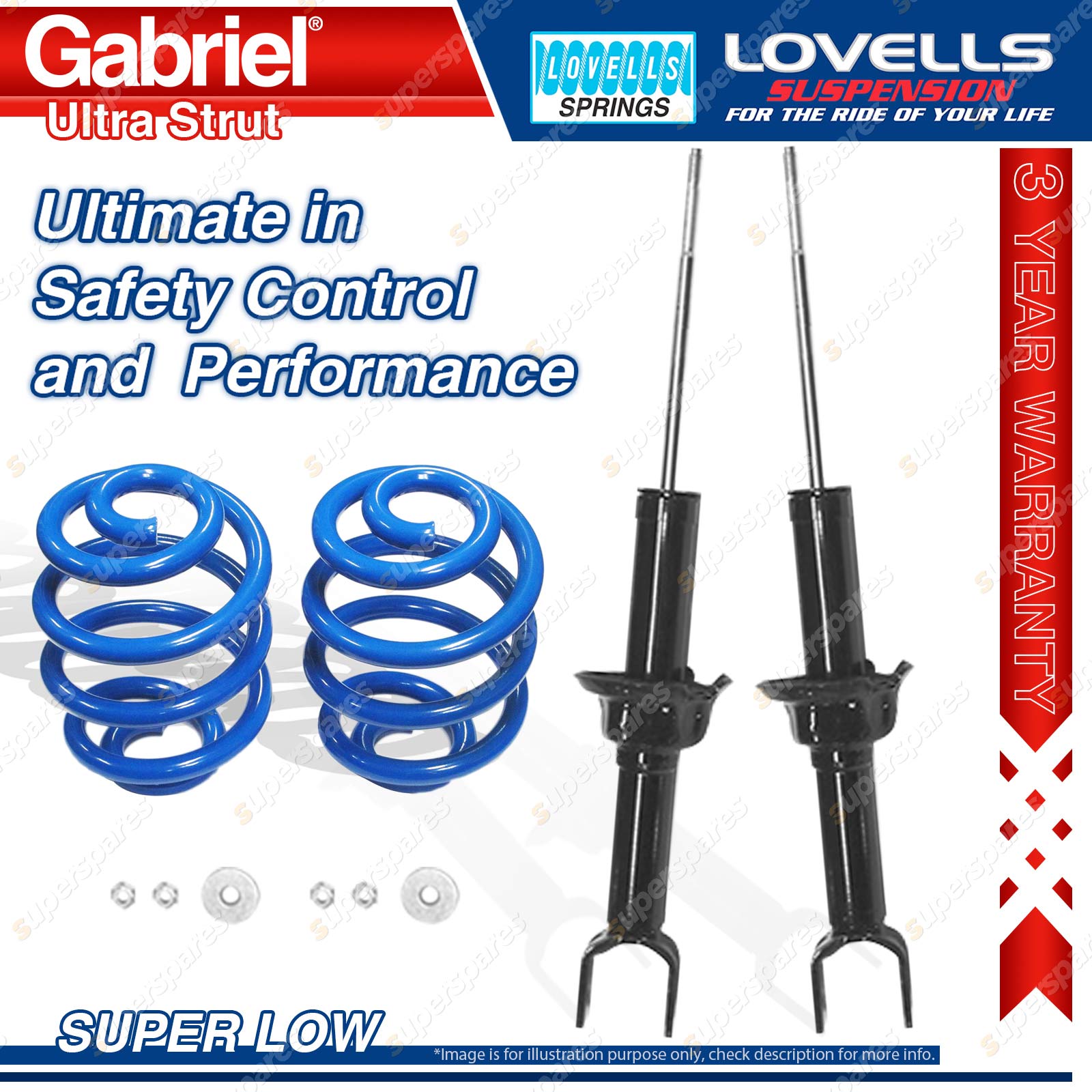 Contents: 2 x Gabriel Ultra Strut Shock Absorbers - Gas 2 x Super Low Lovells Springs Suit: Honda Civic ED3, ED6 Sedan, Hatchback from chassis S100002 1/89-93 Honda CRX ED9 1.6L Liftback from chassis S100002 1/89-92 |