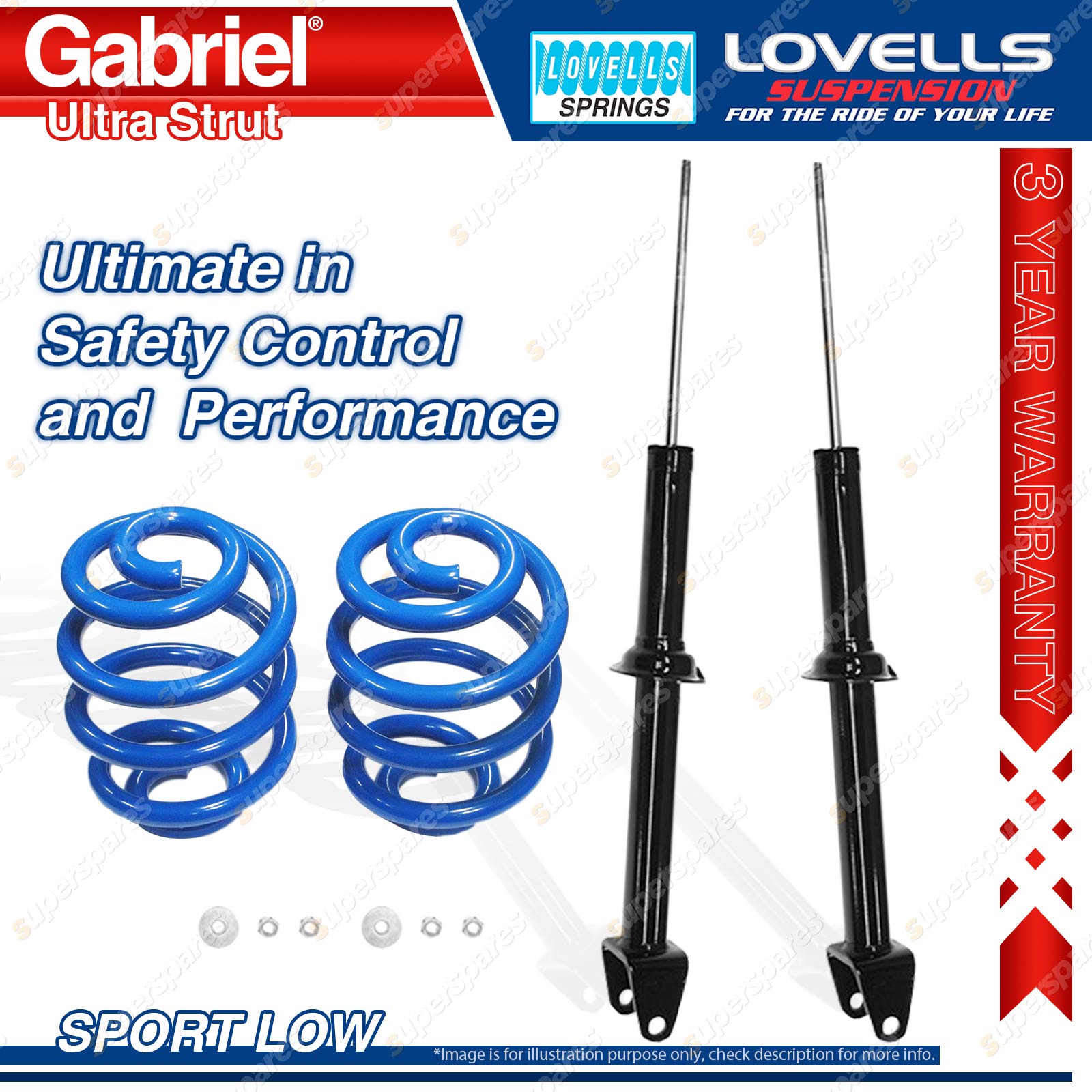 Contents: 2 x Gabriel Ultra Strut Shock Absorbers - Gas 2 x Sport Low Lovells Springs Suit: Honda Prelude BA8, BB1, BB2 2.2L, 2.3L Coupe excl. 4WS 12/91-12/96 |