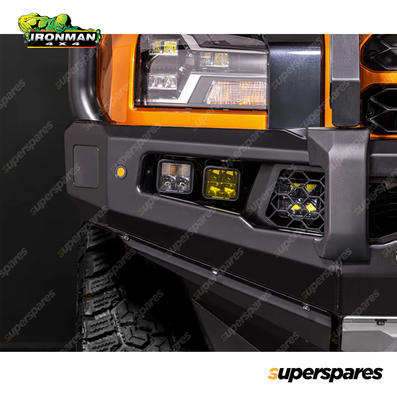 CONTENTS : Ironman 4x4 Premium Apex Bull Bar 60.3mm Steel Triple Hoop SUIT : Mitsubishi Triton MV 2024+ KEY FEATURES : The APEX Bull Bar is a modern twist on a classic design.The 'big bar' design features 60.3mm triple hoops and comes complete with integrated recovery points and a front 4mm bash plate.The latest in bull bar designs includes a pod for optional cube fog, driving and turn park lights, to finish off the modern look.
