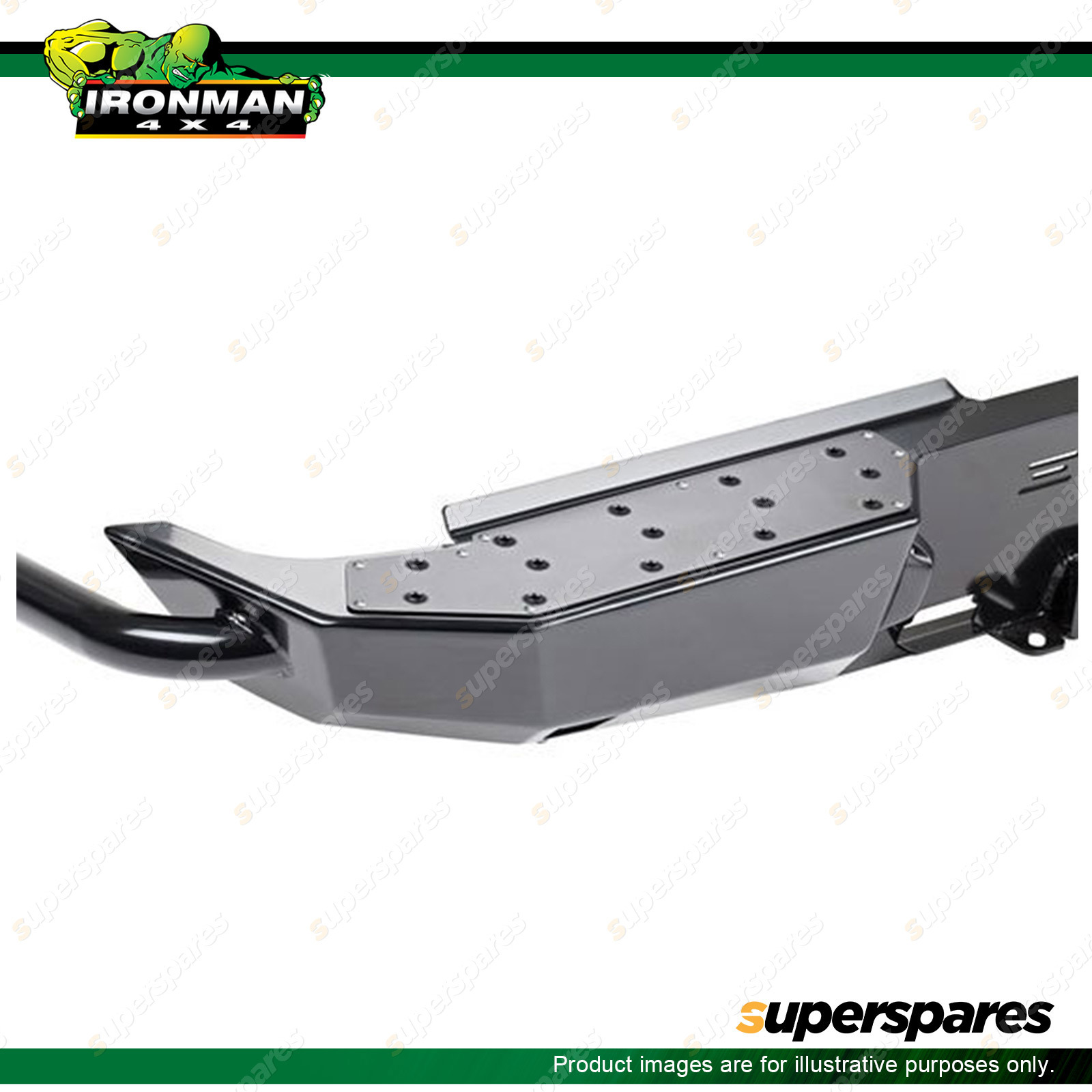 IRONMAN 4x4 REAR PROTECTION TOW BARS Designed for complete vehicle rear protection.Meets ADR and Australian towing standards.Side rear quarter protection.4mm steel construction with 8mm tow bar sub frame.Protected location for anderson and trailer plug. LED numberplatelights.Dynamic and static testing to 3500kg.Comes complete with tow hitch, pin and 3500kg rated 50mm tow ball. |