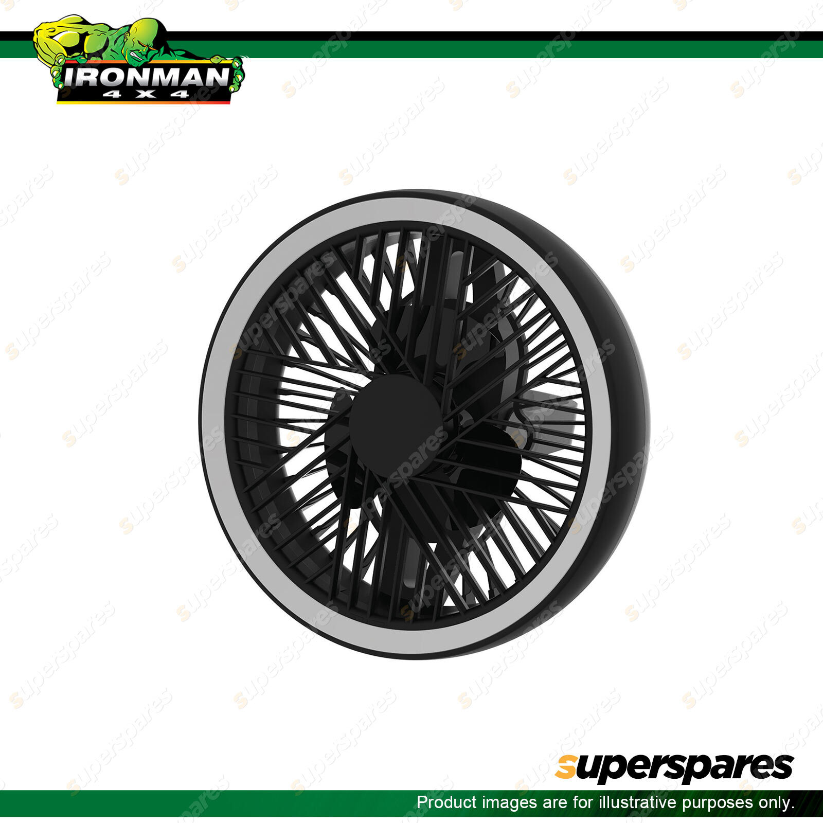 Contents : Ironman 4x4 Rechargeable Hi-Flow Tent Fan and LED Light |