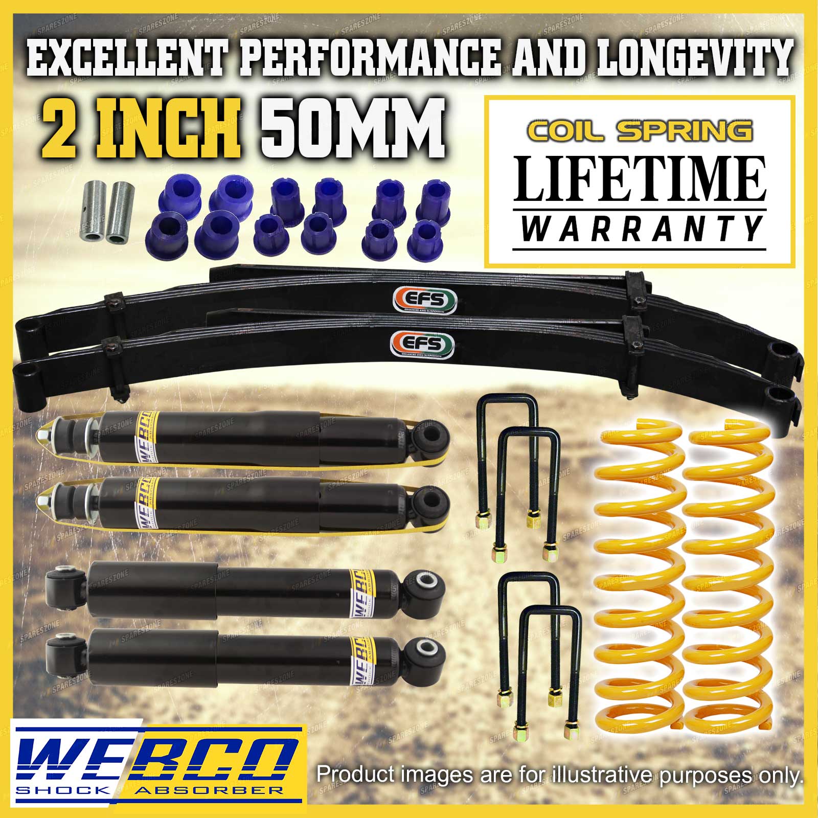 As car enthusiasts ourselves we completely understand the need for only wanting the best top quality aftermarket parts for your vehicle from a reliable and trustworthy source. We have utilised our understanding of this need to develop the best quality lift kits and build strong relationships with out valued customers; here's how... eBay have listed us as a "Top Rated Seller" with a 99.4% Positive feedback rating. We also offer a 30 day change of mind return period with a 100% fitment guarantee to ensure your peace of mind. Spareszone's lift kits offer an immense improvement in suspension performance and comfortability when compared to the standard stock suspension of your vehicle giving our customers a greater driving experience on and off road. |