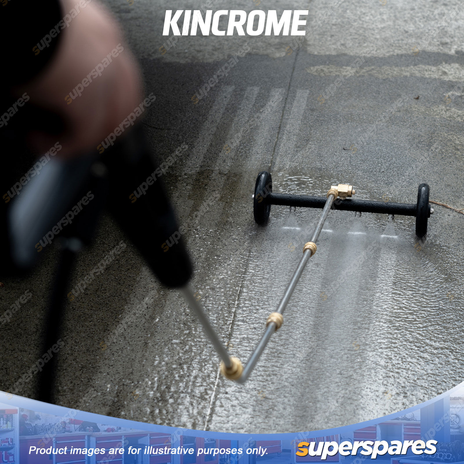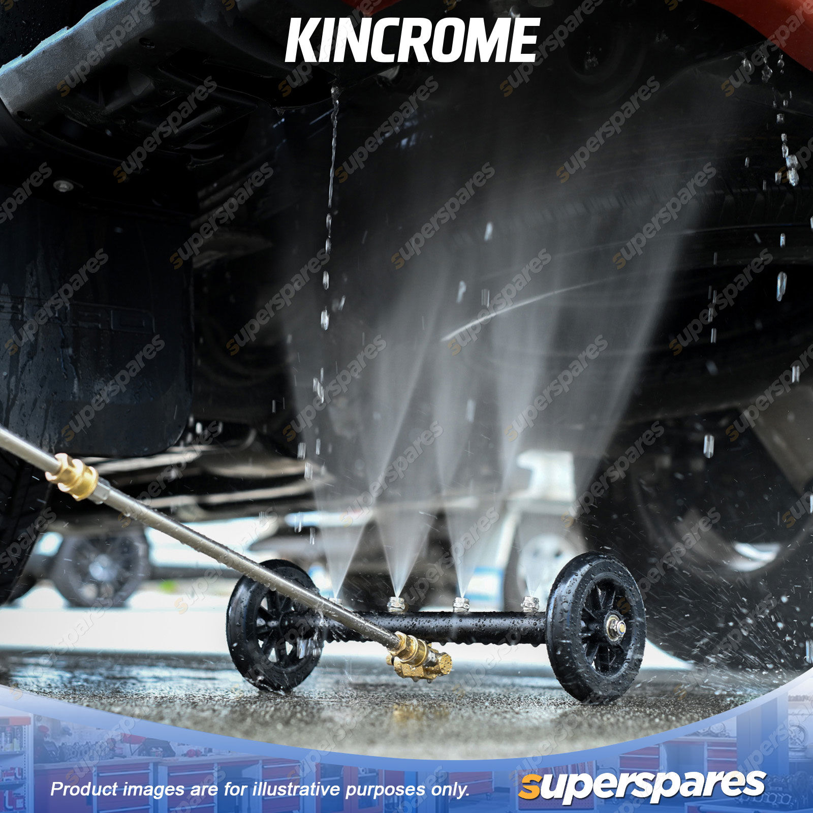Kincrome's 2-in-1 Under Car & Surface Cleaner is a powerful and versatile tool that makes even the toughest cleaning tasks easy. With a simple rotation, you can switch between undercarriage and surface cleaning modes, allowing you to tackle dirt and grime effortlessly. The cleaner features four high-pressure jets that deliver intense blasting power, covering four times the area for efficient cleaning. In under car mode, it's perfect for thoroughly cleaning undercarriages, chassis, suspension, and drive shafts. Surface mode excels at restoring hard surfaces like driveways, concrete, and brick to their original condition. This robust cleaner includes three durable stainless steel extension arms¡ªtwo straight bars and one 30° bar¡ªproviding extended reach and greater flexibility for hard-to-access areas. Designed to work with any pressure washer up to 4,000PSI (recommended 1,500PSI+), it's compatible with all Kincrome pressure washers and other brands featuring a 1/4" quick connect accessory system. With this tool, keeping your 4WD and outdoor surfaces pristine is not only possible but easy. |