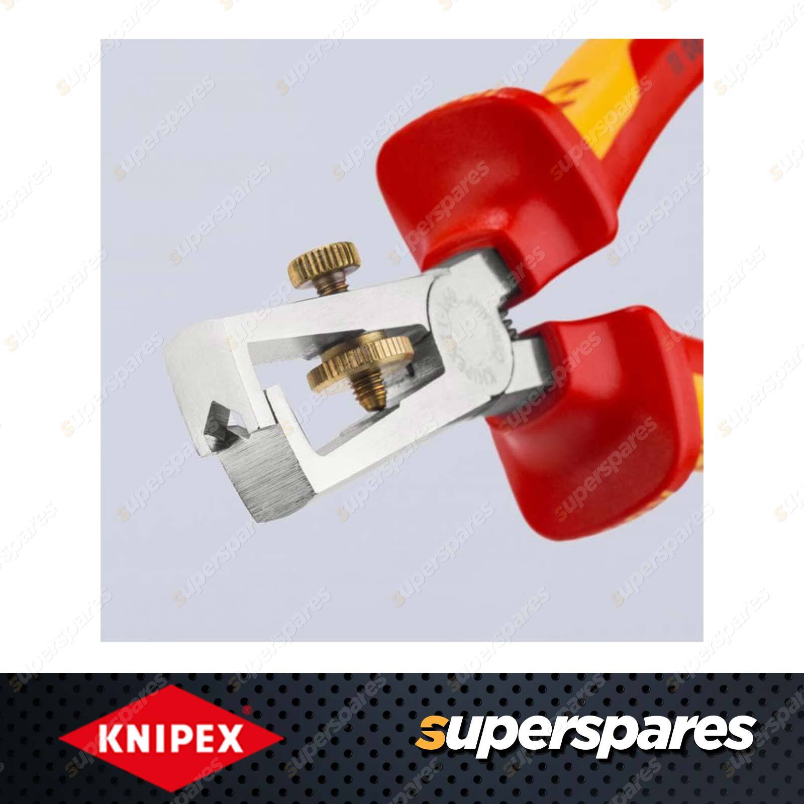 Knipex wire strippers are forged from special tool steel and additionally oil-hardened. The opening spring nestles the pliers gently in the user's hand, thereby substantially reducing strain in hand muscles when holding the pliers tight. The chrome plating protects against corrosion, e.g. if the pliers are kept permanently in a range of tools stored in the company vehicle where temperature changes can lead to moisture (condensation) forming on the tool. Thanks to this machining and finishing step, when used correctly this prepares the pliers for a long tool life. With their multi-component grips, these wire strippers sit comfortably in the hand.