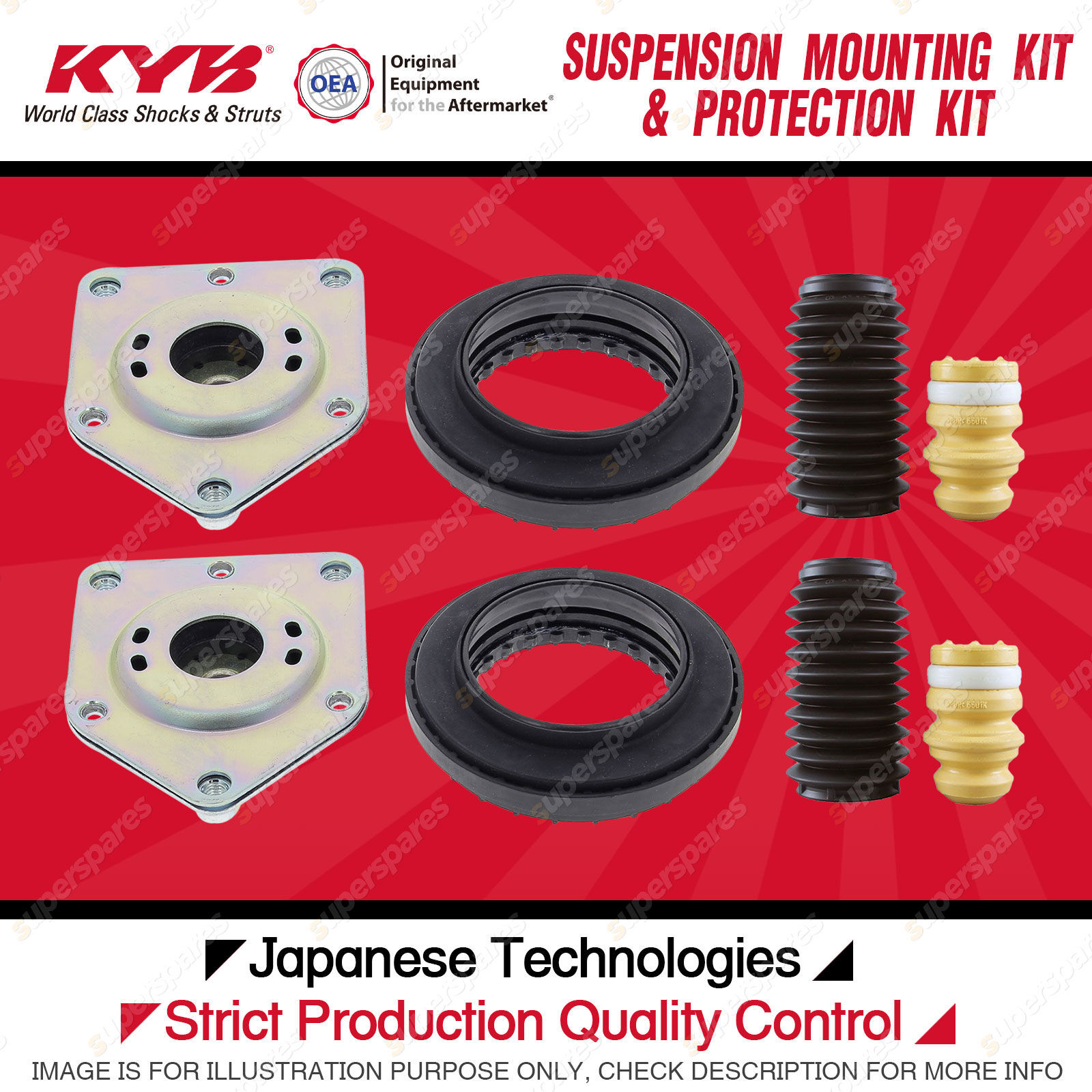 Content : KYB Front Strut Top Mounts Bump Stop Dust Cover Kit