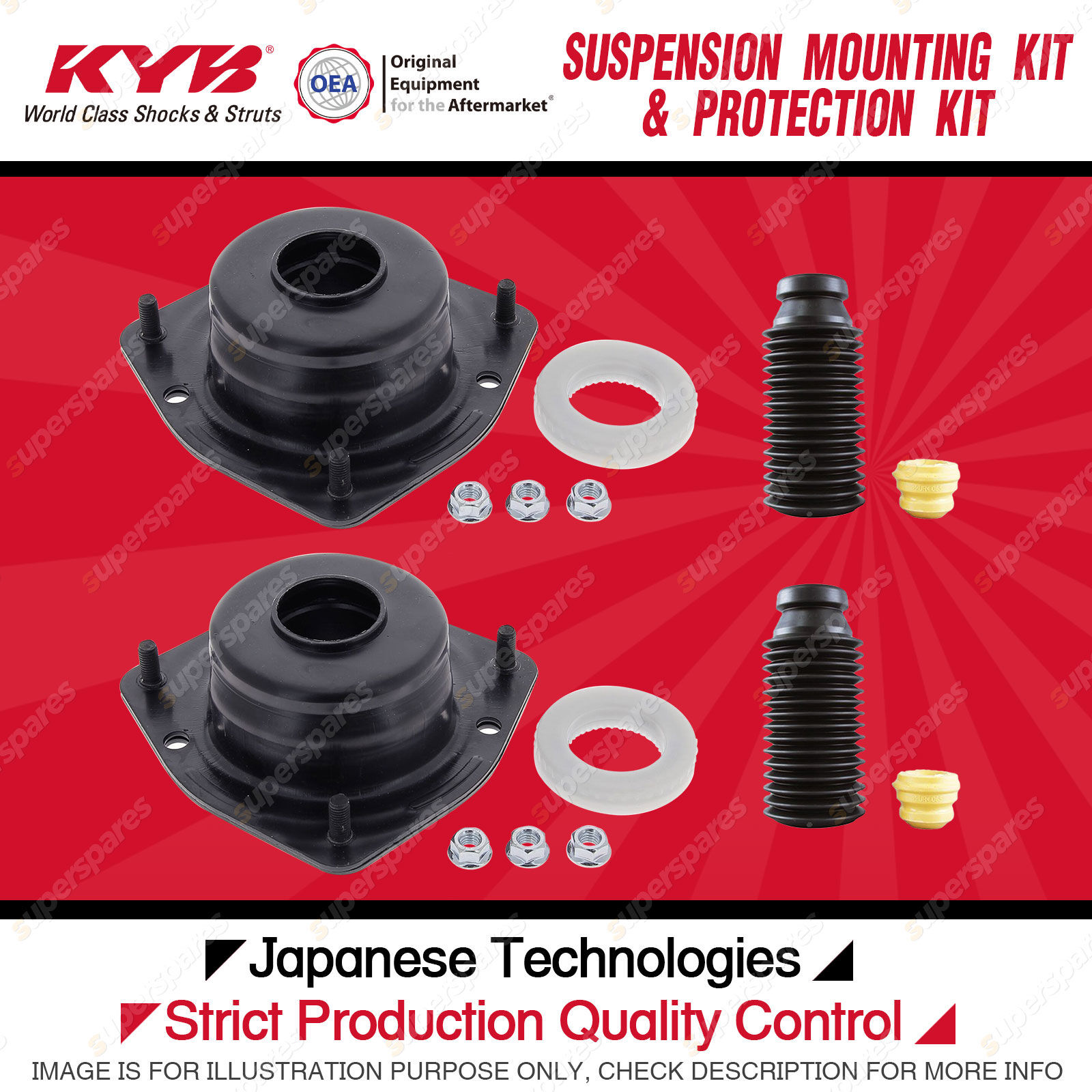 Content : KYB Front Strut Top Mounts Bump Stop Dust Cover Kit