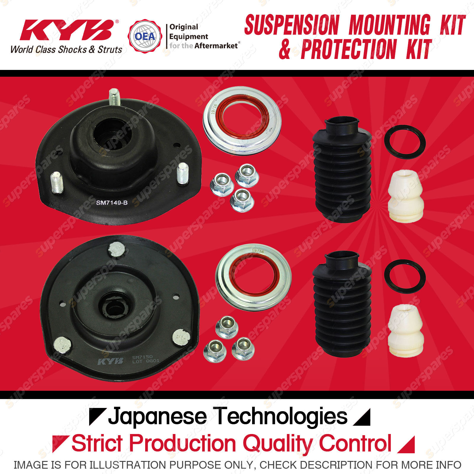 Content : KYB Front Strut Top Mounts Bump Stop Dust Cover Kit