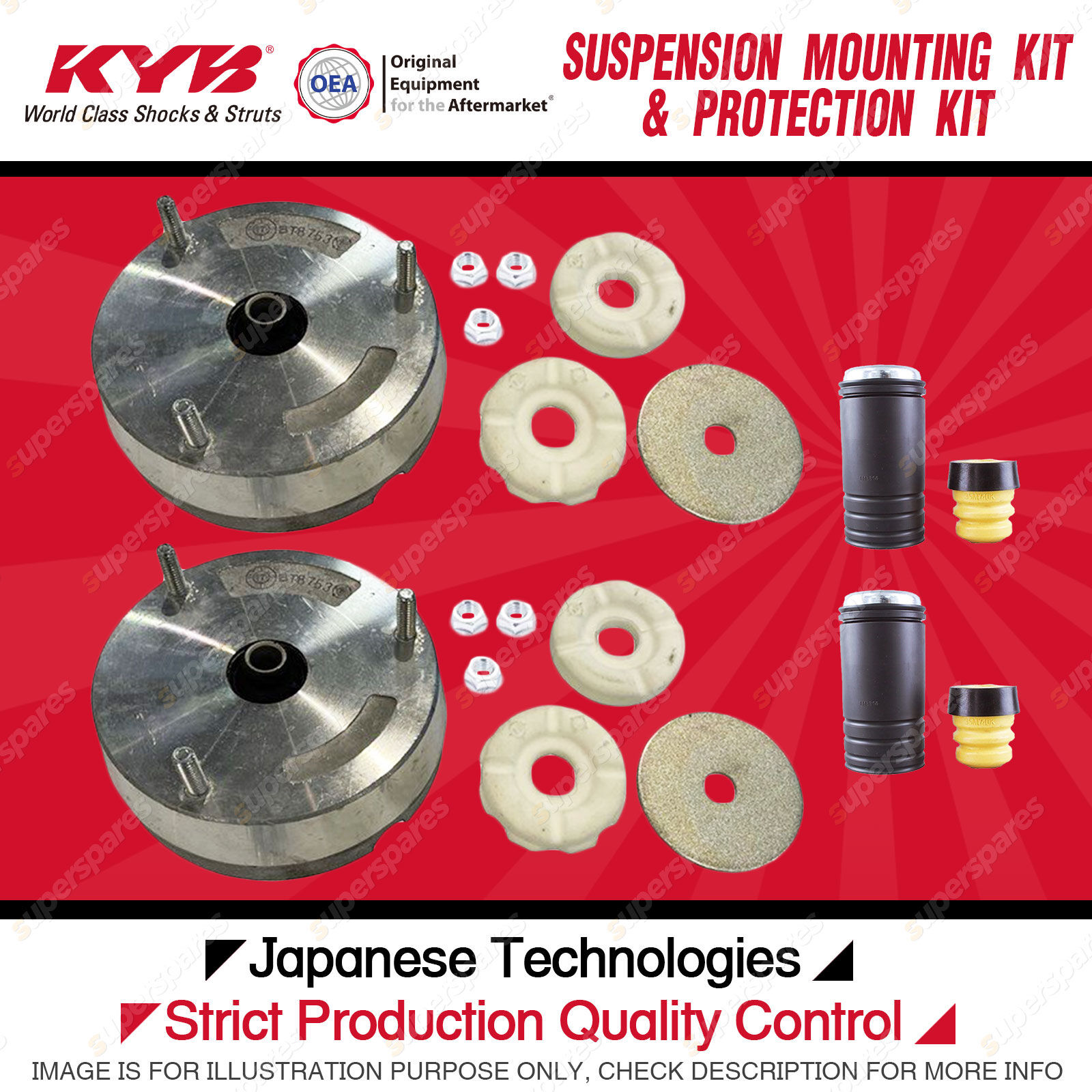 Content : KYB Front Strut Top Mounts Bump Stop Dust Cover Kit