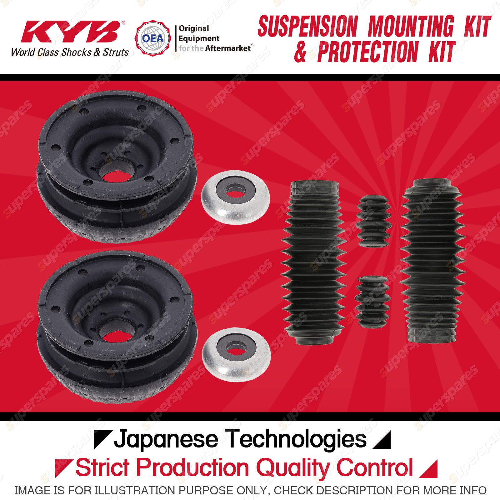 Content : KYB Front Strut Top Mounts Bump Stop Dust Cover Kit
