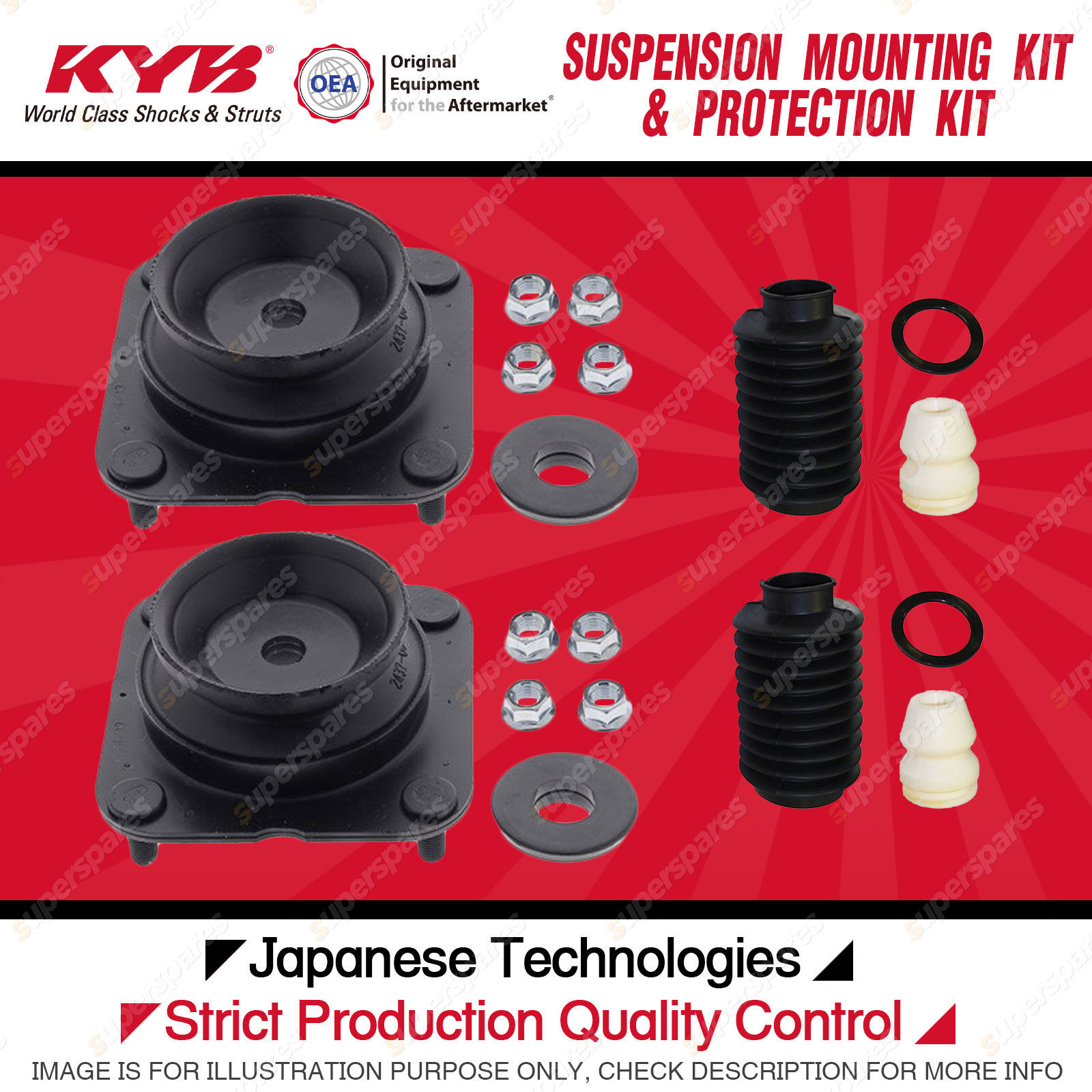 Content : KYB Front Strut Top Mounts Bump Stop Dust Cover Kit