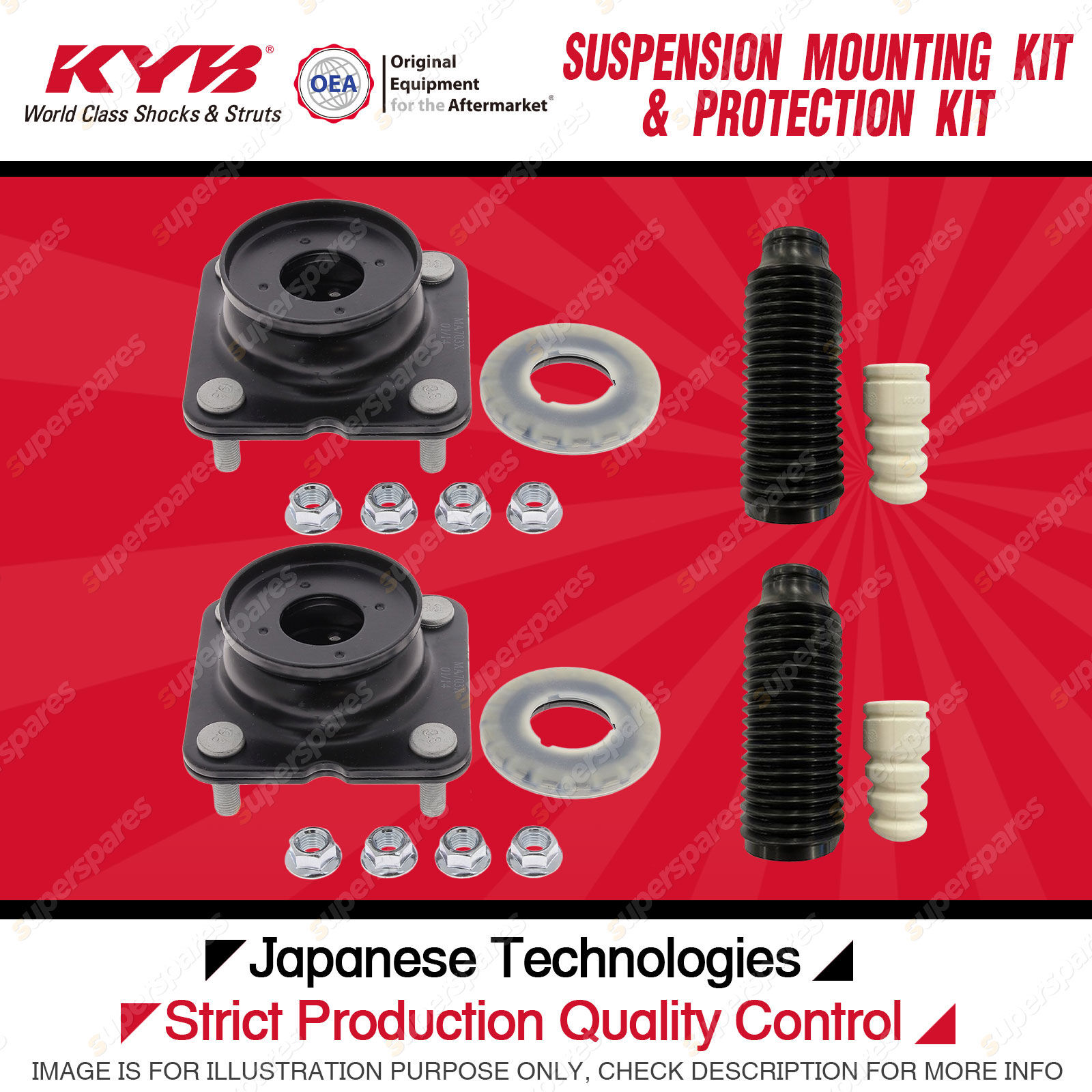 Content : KYB Front Strut Top Mounts Bump Stop Dust Cover Kit