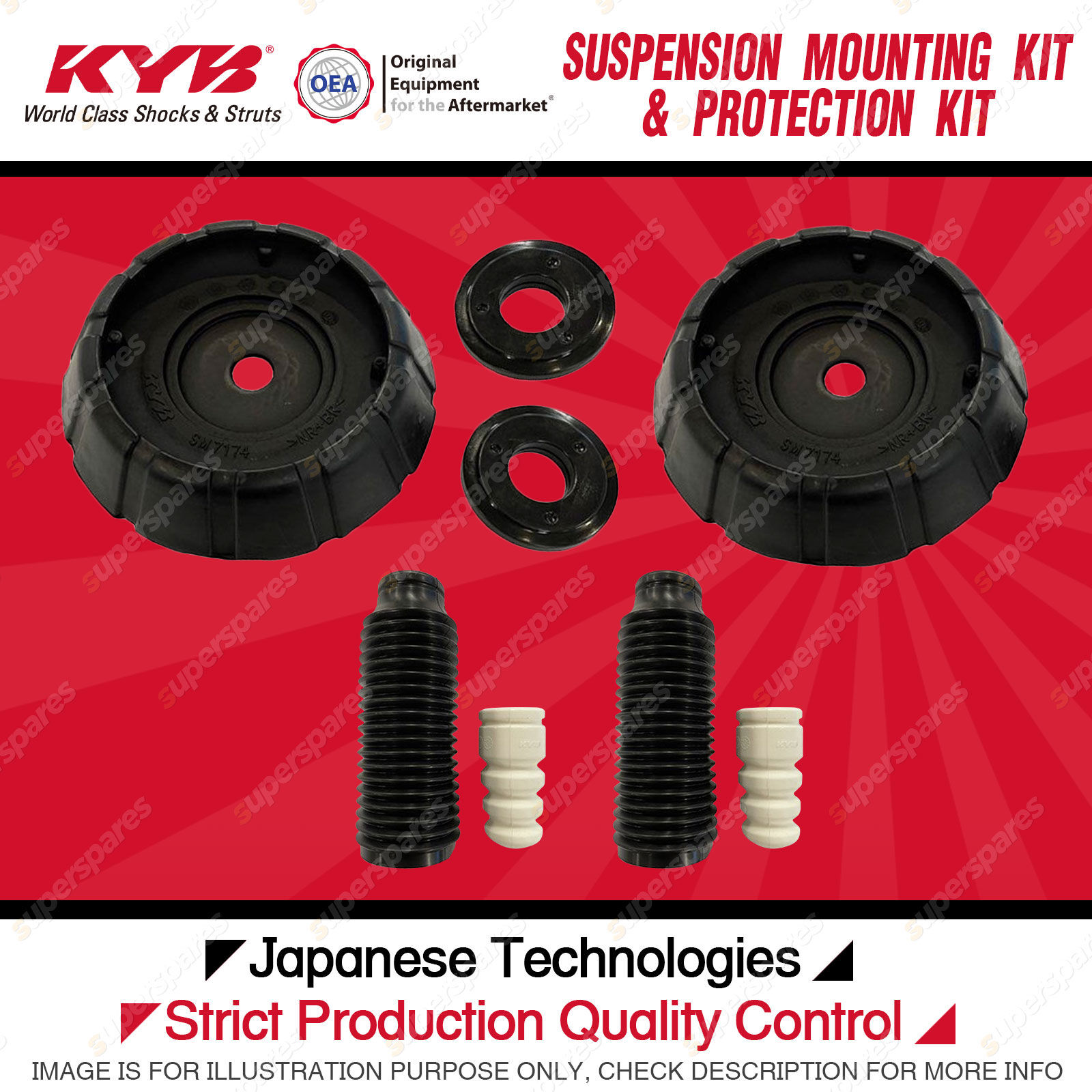 Content : KYB Front Strut Top Mounts Bump Stop Dust Cover Kit