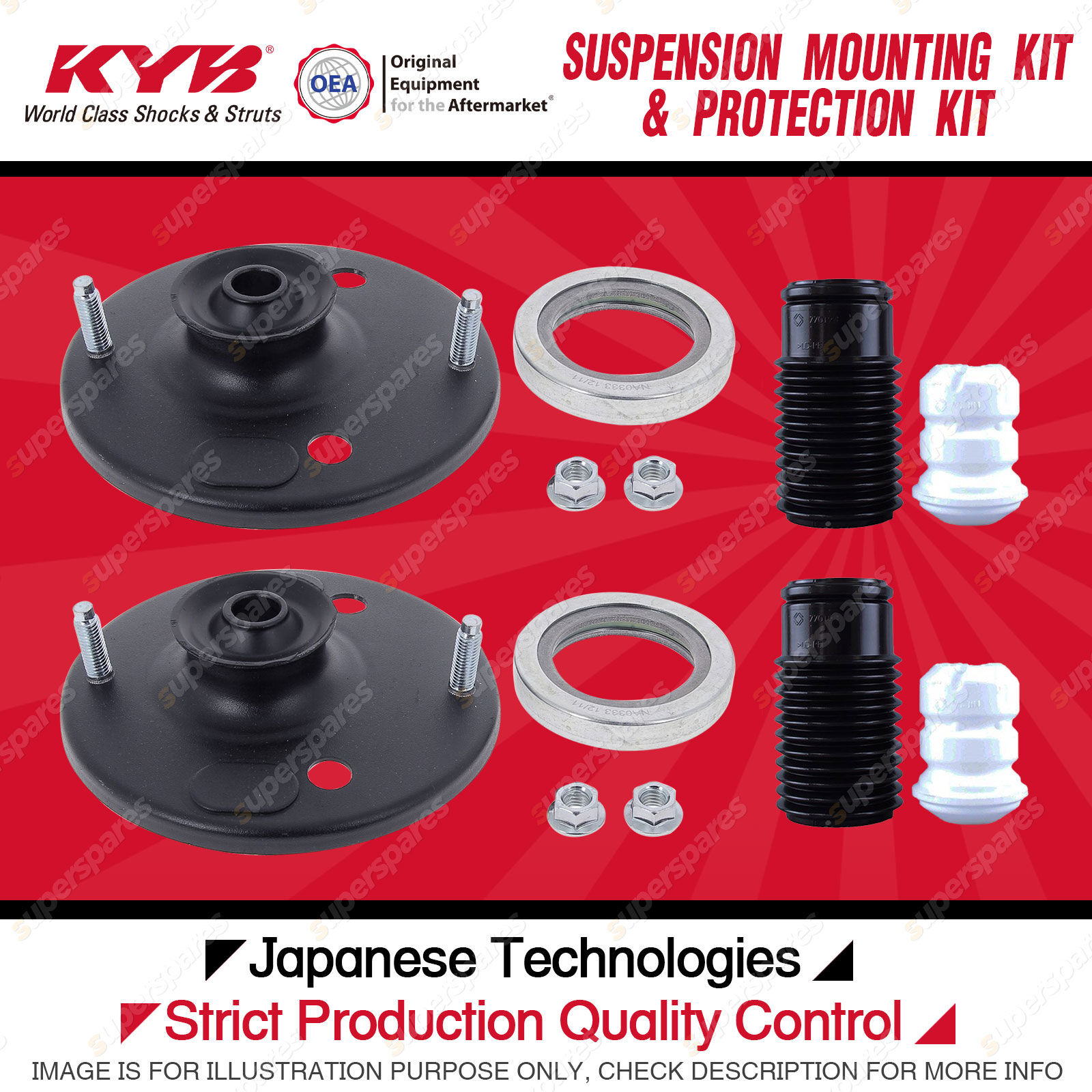 Content : KYB Front Strut Top Mounts Bump Stop Dust Cover Kit